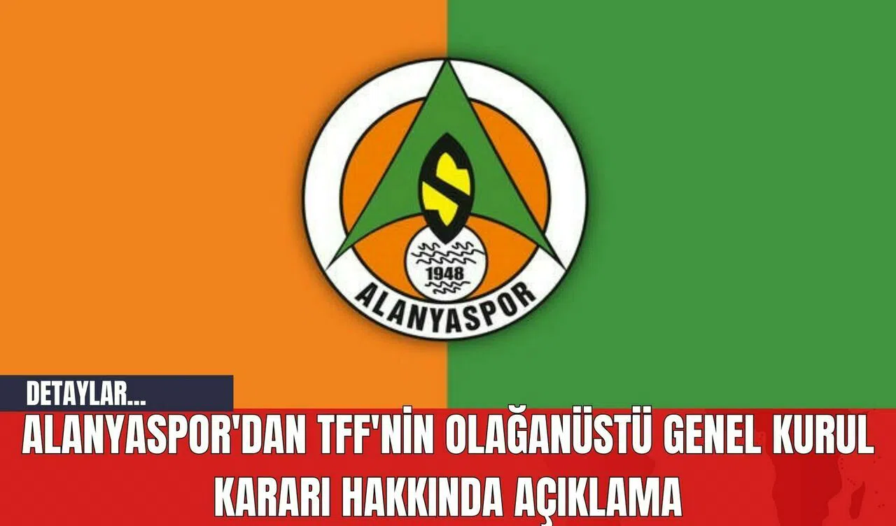 Alanyaspor, Türkiye Futbol Federasyonu'nun (TFF) 18 Temmuz olarak duyurduğu olağanüstü genel kurul kararıyla ilgili olarak bir açıklama yayınladı. Kulüp yetkilileri, futbol camiasının birliğini korumak adına 18 Temmuz'da olağanüstü genel kurulun en uygun tarih olduğunu belirtti. Geçmişte yaşanan hatalardan ders çıkarılması gerektiğine vurgu yapılan açıklamada, Türk futbolunun geleceğine güvenle bakılması gerektiğinin altı çizildi.