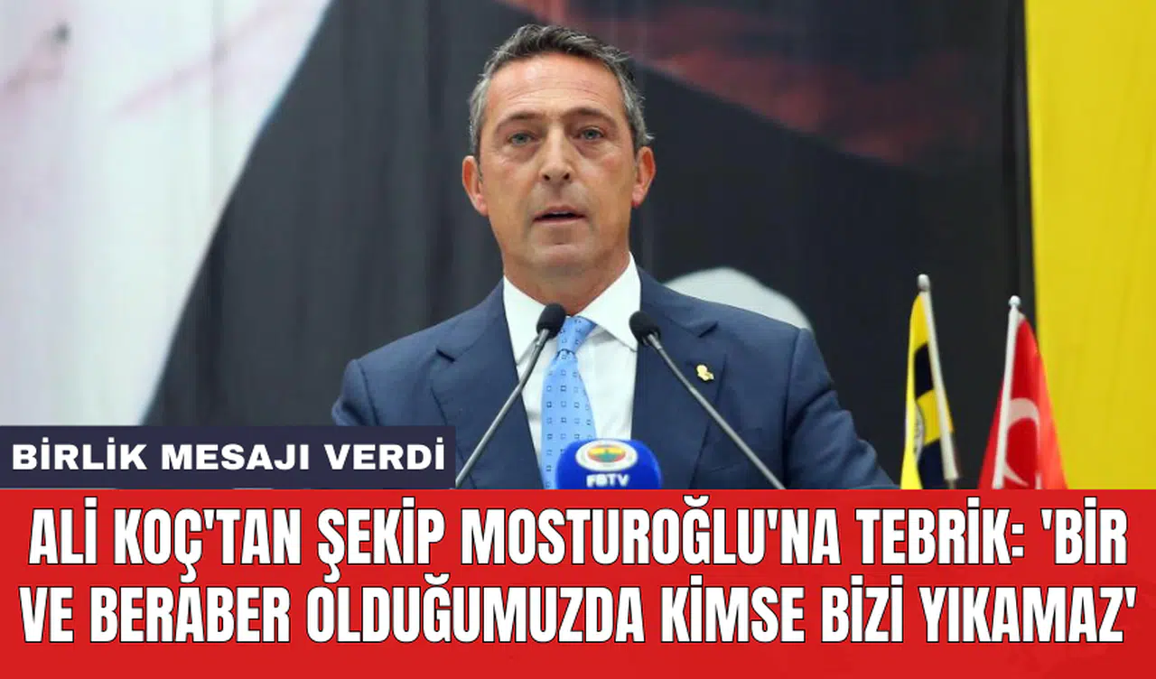 Fenerbahçe Başkanı Ali Koç, Yüksek Divan Kurulu Başkanlığına seçilen Şekip Mosturoğlu'nu tebrik etti. Koç, 'Bir ve beraber olduğumuzda, tek yumruk olduğumuzda yıkamayacağımız duvar yoktur, bizi de kimse yıkamaz' dedi.