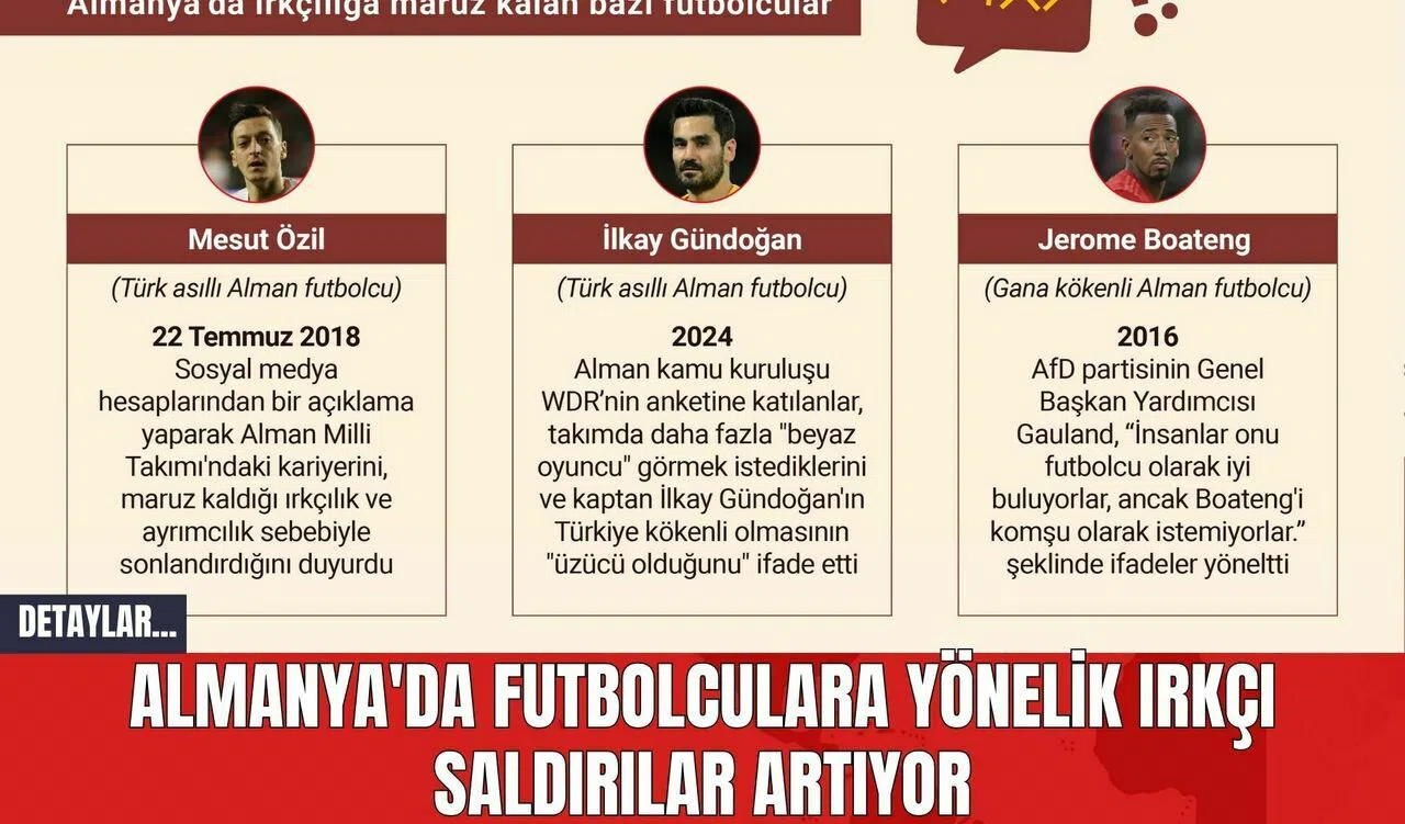 Almanya'da Türk asıllı ve siyahi sporculara yönelik nefret söylemleri son yıllarda artış gösterdi ve defalarca gündeme taşındı. AA muhabiri, Alman futbolundaki ırkçılık olaylarını derledi.