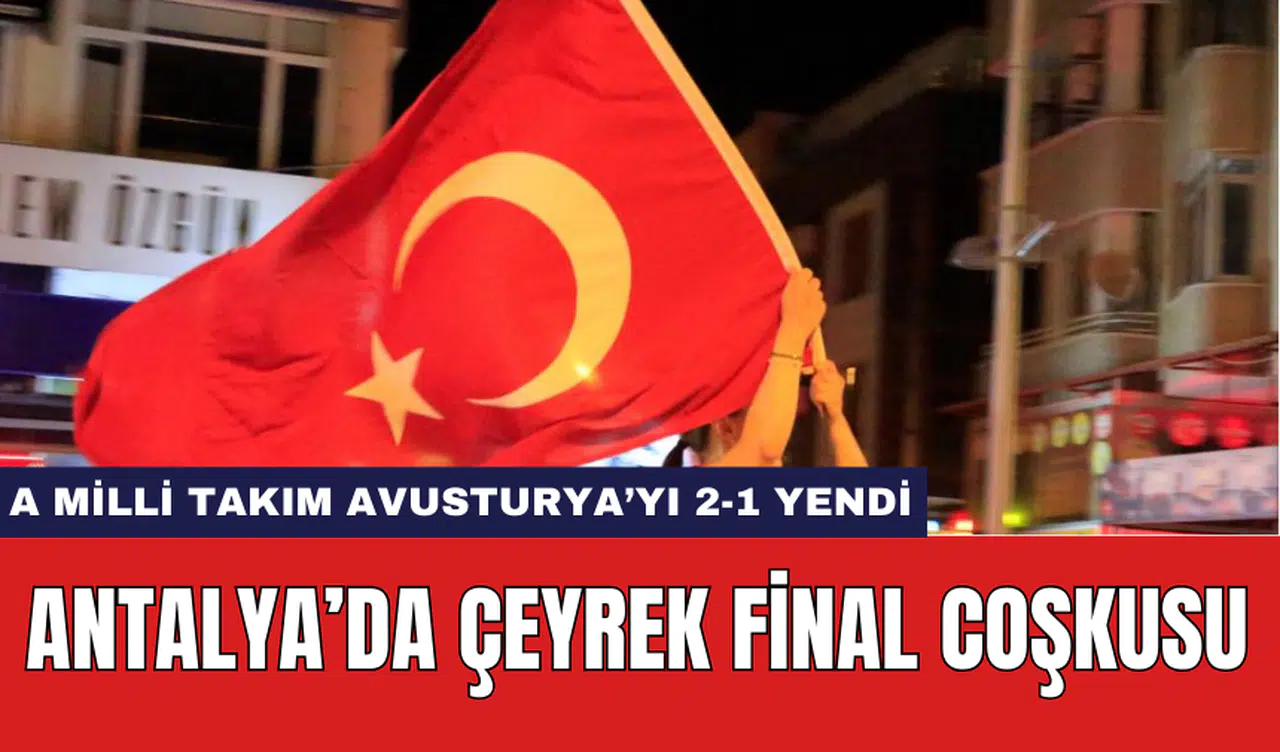 2024 Avrupa Futbol Şampiyonası'nda Türk Milli Takımı, son 16 turunda Avusturya'yı 2-1 mağlup ederek çeyrek finale yükseldi. Karşılaşmanın bitiş düdüğüyle birlikte Antalya sokaklarına dökülen vatandaşlar, araçlarıyla uzun konvoylar oluşturarak galibiyeti coşkuyla kutladı.