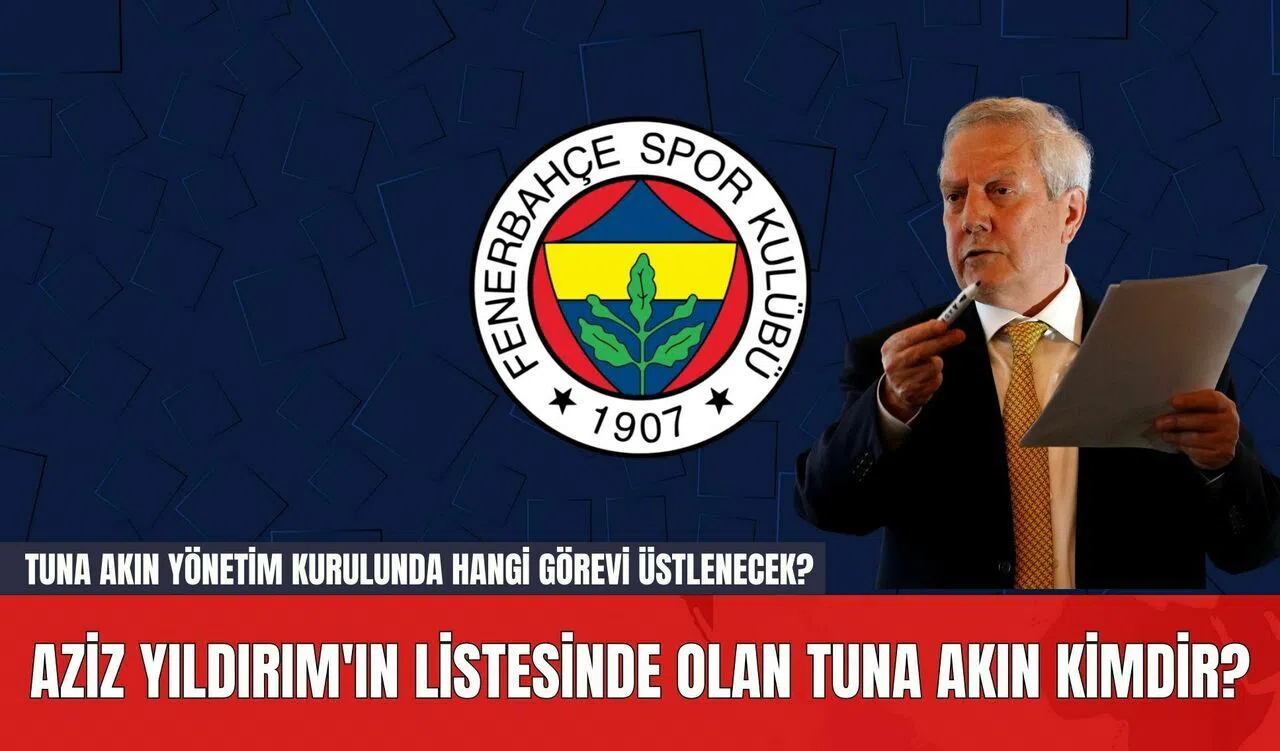 Tuna Akın, Fenerbahçe başkan adayı olan Aziz Yıldırım'ın yedek yönetim kurulu listesinde yer alarak dikkat çekiyor. Aziz Yıldırım, tecrübeli ve dinamik ekibiyle birlikte Fenerbahçe'yi daha ileriye taşımayı hedeflemektedir. Yıldırım'ın oluşturduğu bu liste, kulübün gelecekteki stratejilerini belirlemede önemli rol oynayacak isimlerden oluşmaktadır.