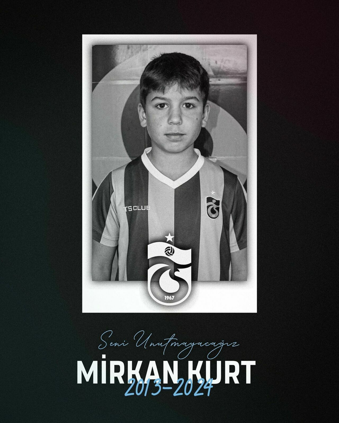 Bakan Dr. Osman Aşkın Bak, taziye mesajında şu ifadelere yer verdi: 'Trabzonspor'un altyapı futbolcusu Mirkan Kurt evladımızın, hayatını kaybettiğini derin bir üzüntüyle öğrendim. 11 yaşında yaşamını yitiren sporcumuza Allah'tan rahmet, ailesine, yakınlarına ve Trabzonspor camiasına başsağlığı diliyorum.'