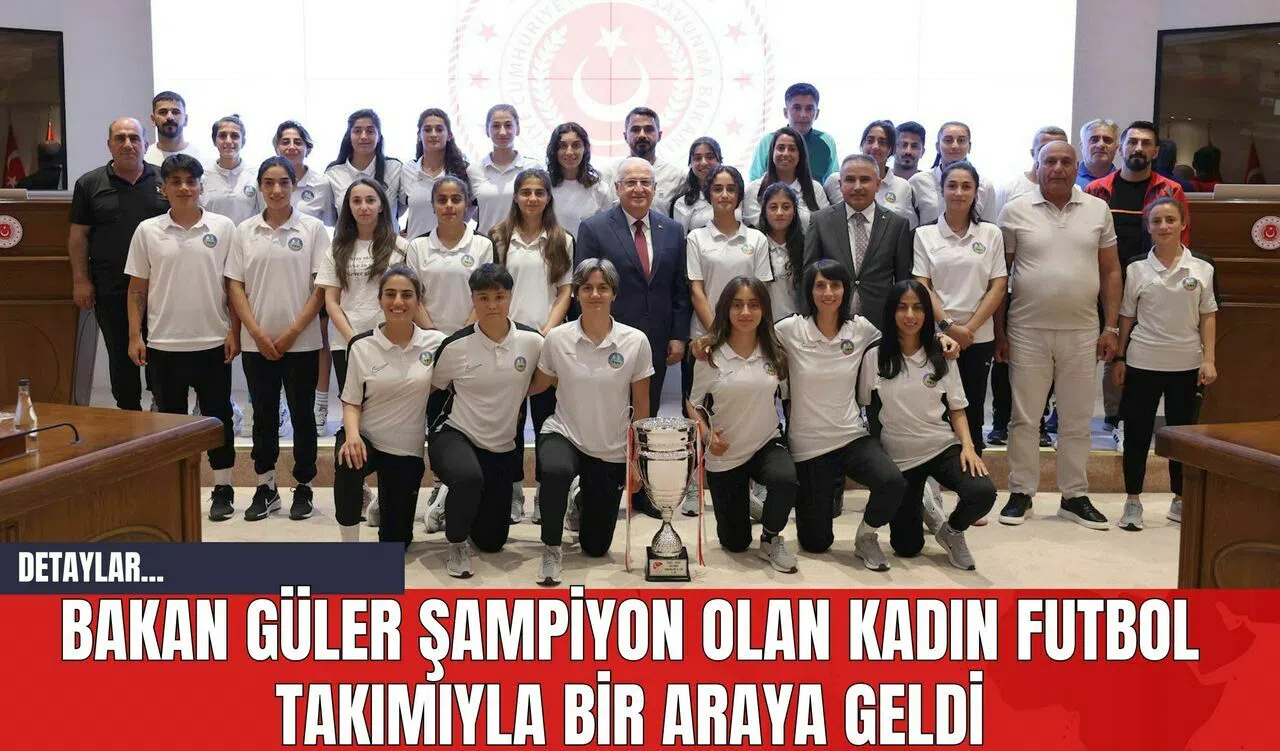 Millî Savunma Bakanı Yaşar Güler, Kadınlar 2’nci Ligi’nde zafer kazanan Yüksekova Belediyespor Kadın Futbol Takımı ile Millî Savunma Bakanlığı'nda bir araya geldi. Bakan Güler, takımı alkışlayarak salona girdi ve şampiyonluk anlarını genç sporcularla birlikte izledi. Bakan Güler, genç sporculara desteklerini gösterdi ve başarılarının devamını diledi.