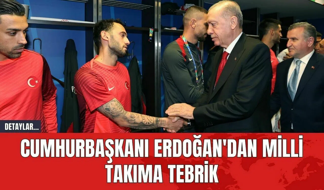 Karşılaşmanın ardından soyunma odasına inen Cumhurbaşkanı Erdoğan, milli futbolcuları tek tek tebrik etti. Erdoğan, futbolculara hitaben yaptığı konuşmada, "Hepinizi tebrik ediyorum. Her ne kadar bugün burada bu neticeyi aldıysak da siz bizim şampiyonumuzsunuz. Biz sizden memnunuz. Bunun geleceği de var, gelecekte de biz bu işi götüreceğiz. Ben buna inanıyorum. Buraya kadar bu işi çok başarılı getirdiniz" dedi.