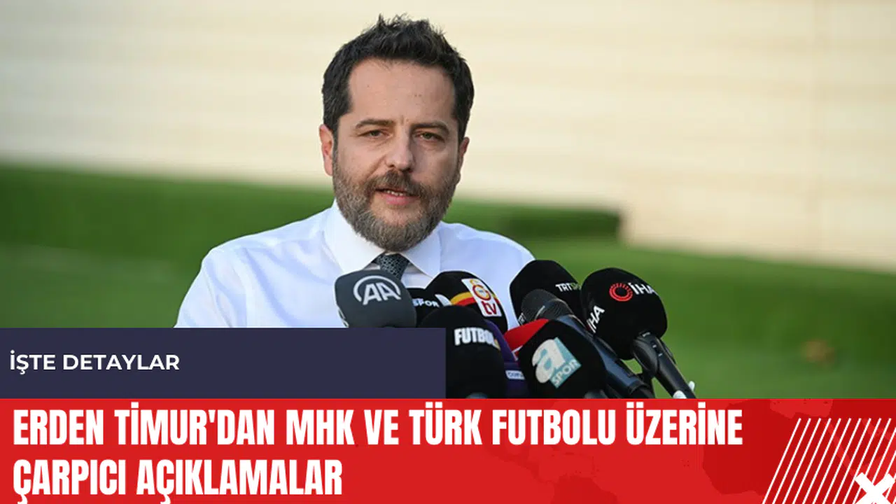 Erden Timur, 'Gerçekten kayrılarak, 90+'larda 8-10 puan alan bir takım var. Her hatadan sonra mağdur gibi açıklamalar yapılıyor. Olunamayan şampiyonluklara neden bulmak için bu kadar manipülasyon bu işi bambaşka noktaya götürüyor. Bu kaygı ve korku imparatorluğu çökmeden, insanlara psikolojik baskıyla yapılan zulüm sona ermeden bu işi çözemeyiz. Bunun için de şeffaflık gerek. Türk futbolu için cesur davranalım. Tek çözüm her şeyi şeffaflaştırmak. Aksi halde kirli eller içeride bilgiyi sızdırıyor. Oradan Amerika'ya gidiyor. Kirli bir organizasyon buraya getiriyor. Bu kirliliklerin son bulması için tek çözüm şeffaflık' diye konuştu.