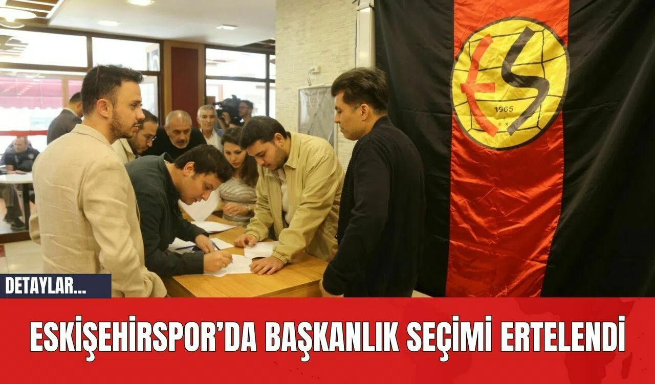 Eskişehirspor'da Yunus Emre Kültür ve Sanat Merkezi’nde bugün saat 13.00'da mali genel kurulun, saat 14.30'da ise olağanüstü seçimli genel kurulun yapılması planlanıyordu. Ancak, kulüp muhasebe müdürü Gökay Mehmet Şahin tarafından yapılan açıklamada, yeterli çoğunluğun sağlanamaması nedeniyle her iki kurulun da 2 Haziran'a ertelendiği belirtildi.