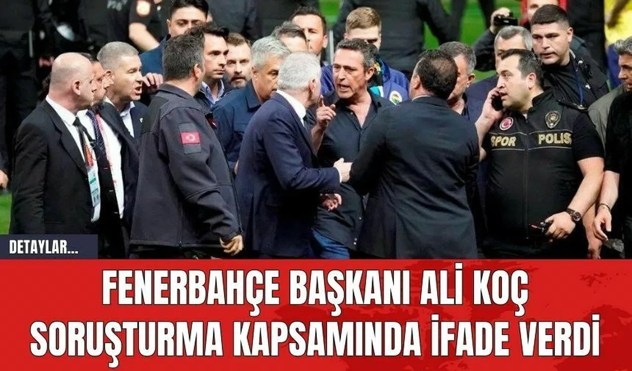 Fenerbahçe Kulübü Başkanı Ali Koç, 19 Mayıs'taki Galatasaray ve Fenerbahçe derbisinin ardından yaşanan olaylara ilişkin yürütülen soruşturma kapsamında İstanbul Adalet Sarayı'nda savcılığa ifade verdi. Koç, yaklaşık bir buçuk saat süren ifadesinin ardından adliyeden ayrıldı. İstanbul Cumhuriyet Başsavcılığı'nın devam eden soruşturması çerçevesinde, Koç'un yanı sıra Fenerbahçe Yönetim Kurulu Üyesi Selahattin Baki de 'şüpheli' sıfatıyla ifadeye çağrılmıştı.