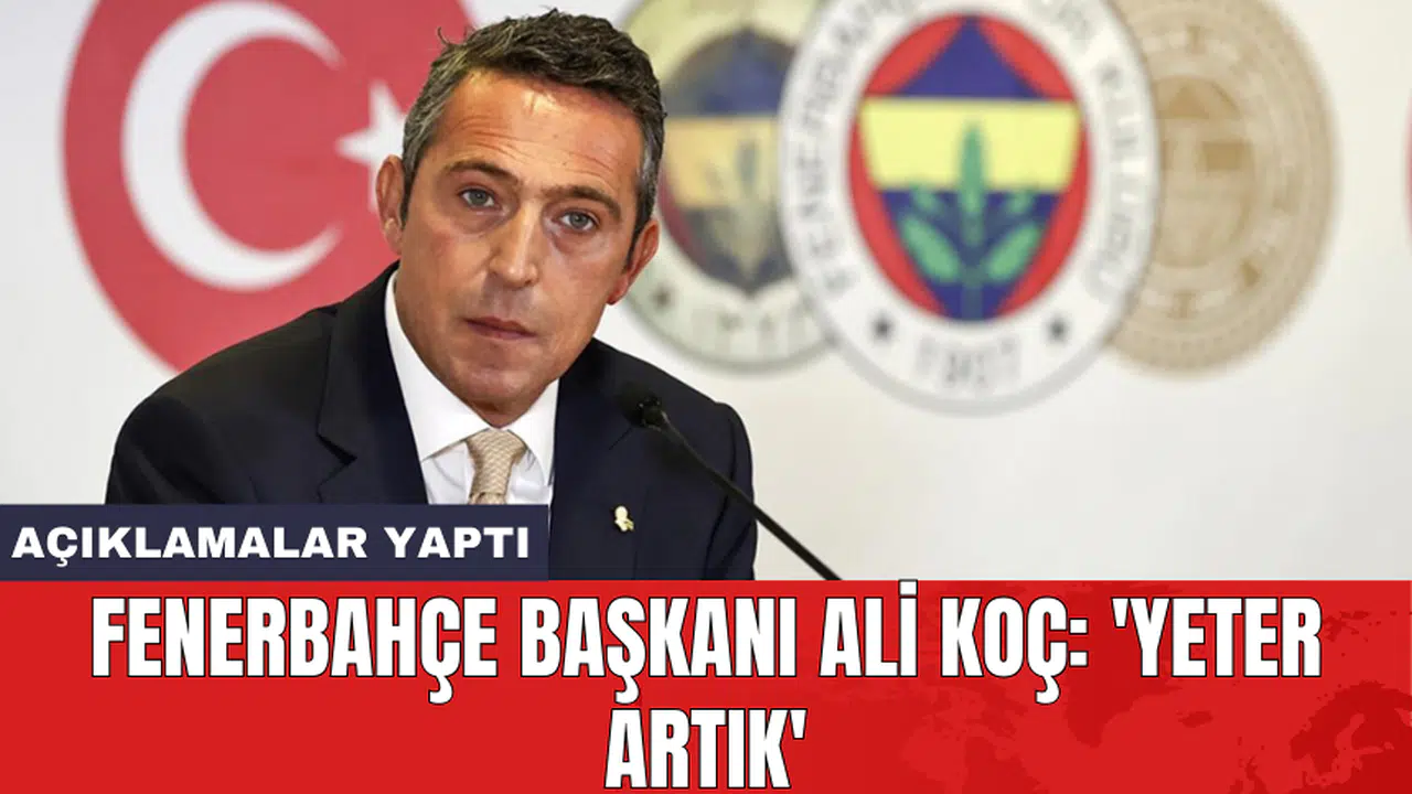 Fenerbahçe Başkanı Ali Koç, 'Saha içinde hakemlerin eliyle standart dışı hakem yönetimi, TFF’nin çifte standart yaptırımları, başarı için her yol mubahtır anlayışla, kin ve nefret kusan rakipler, daha da önemlisi bunlara müsamaha gösterenler, pek çok olay, içinde bulunduğumuz kısır döngü bizlere ‘yeter’ dedirtti' diye konuştu.