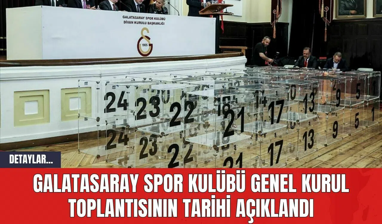 Galatasaray Spor Kulübü'nün genel kurul toplantısının detaylarına göre, ilk toplantı 18 Mayıs Cumartesi günü gerçekleşecek. Ancak, yeterli çoğunluk sağlanamazsa ikinci toplantı 25 Mayıs Cumartesi günü aynı yer ve saatte yapılacak.
