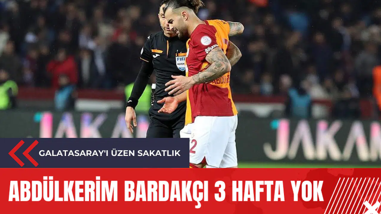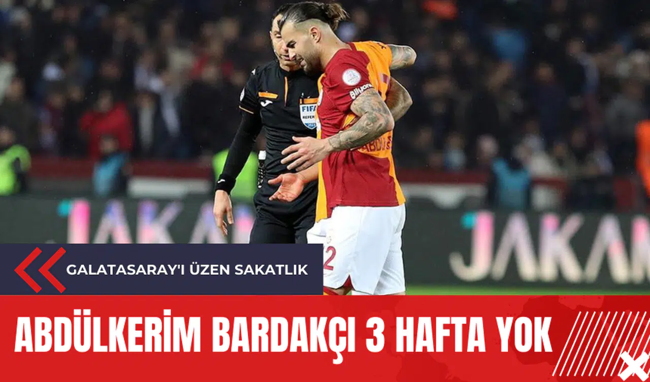 Galatasaray'ın stoperi Abdülkerim Bardakcı, Trabzonspor maçında sakatlanarak oyundan çıkmıştı. Galatasaray, bugün yaptığı açıklamayla Abdülkerim Bardakcı'nın sol alt arka adale grubunda 2. derece strain (zorlanma, kanama ve kısmi yırtık) tespit edildiğini duyurdu.