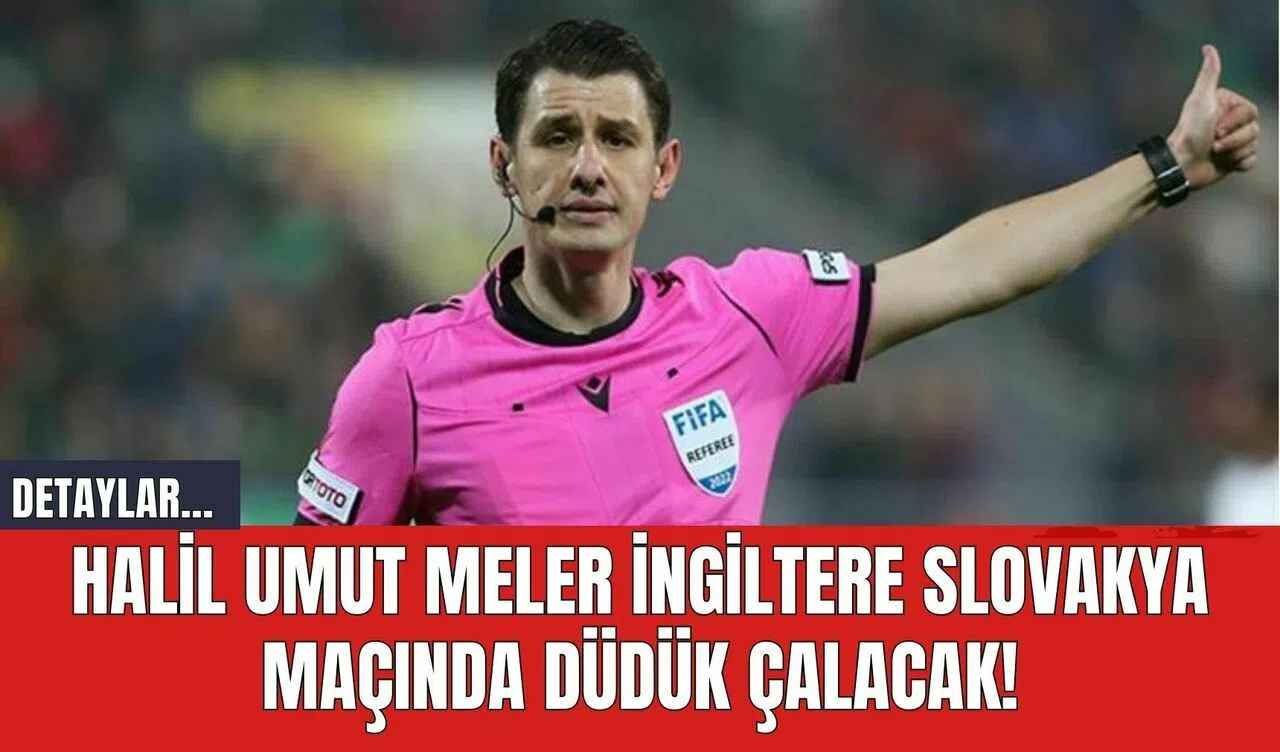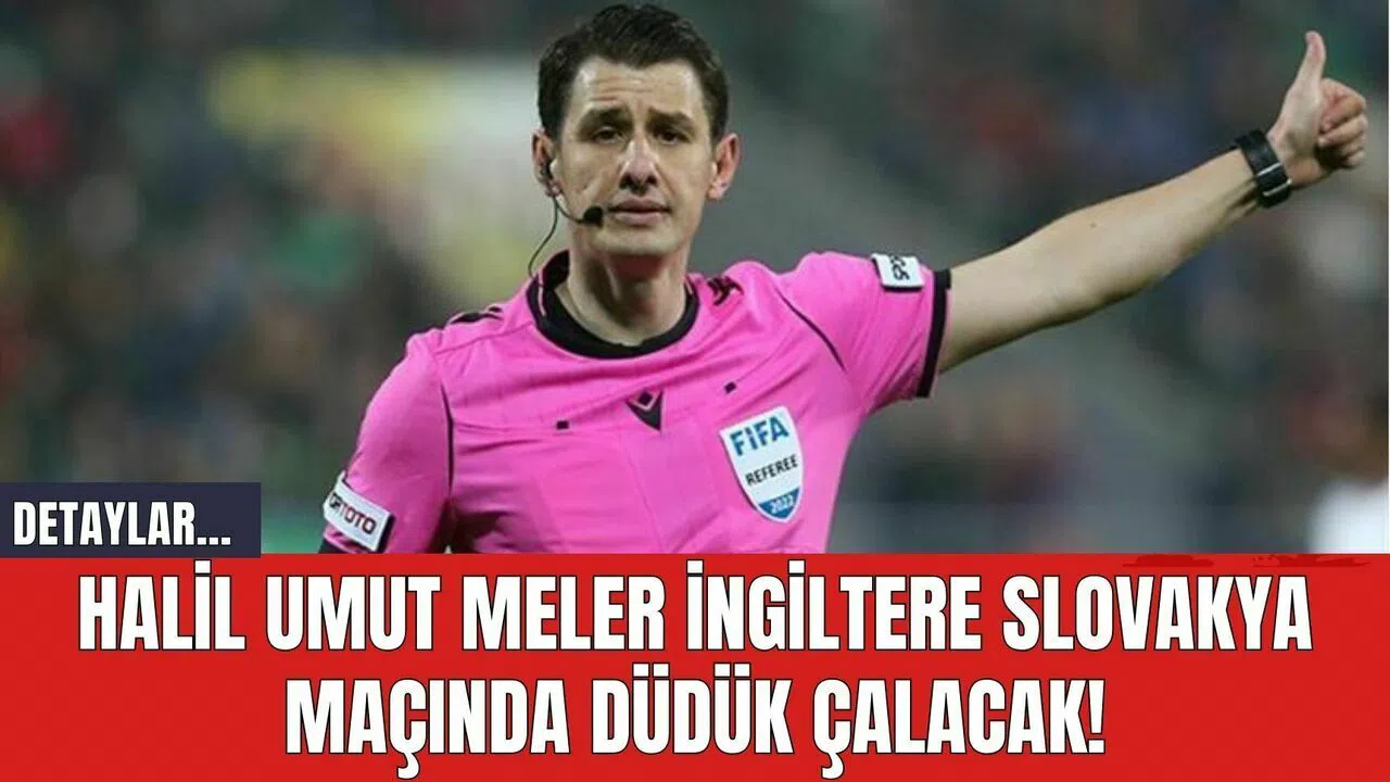 FIFA kokartlı Türk hakem Halil Umut Meler, 2024 Avrupa Futbol Şampiyonası'nda (EURO 2024) son 16 turundaki önemli bir göreve atandı. Meler, 30 Haziran Pazar günü TSİ 19.00'da Almanya'nın Gelsenkirchen şehrindeki Arena AufSchalke'de oynanacak İngiltere - Slovakya maçını yönetecek.
