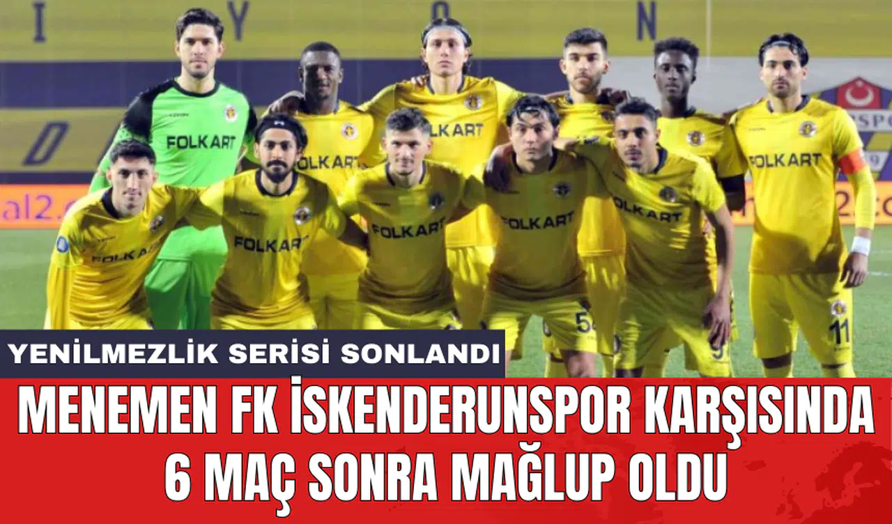 TFF 2. Lig Kırmızı Grup'ta mücadele eden Menemen FK, 35. hafta mücadelesinde İskenderunspor'a karşı beklenmedik bir yenilgi aldı. Bu mağlubiyetle, Menemen FK'nın 6 maçlık yenilmezlik serisi sona erdi.