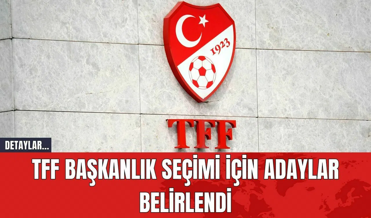 TFF'nin resmi sitesinden yapılan açıklamada, "Türkiye Futbol Federasyonu'nun 18 Temmuz 2024 tarihinde yapılacak Olağan Mali ve Seçimli Genel Kurulu'nda yapılacak başkan seçimi için adaylık başvuruları TFF Statüsü'nün 38. maddesi uyarınca 11 Temmuz 2024 tarihinde sona ermiştir. TFF Başkan Adaylığı için belirtilen sürede TFF Genel Sekreterliği'ne yapılan başvurular neticesinde TFF Statüsü'nün 38. maddesinin 2. fıkrasında belirtilen yeterlilik şartları ve başvuru belgelerinin incelenerek değerlendirme yetkisi Genel Kurul Divan Kurulu'na ait olmak üzere, genel kurulda başkan adayı olmak için TFF Genel Sekreterliği'ne başvuran kişiler alfabetik sırayla aşağıda belirtilmiştir;