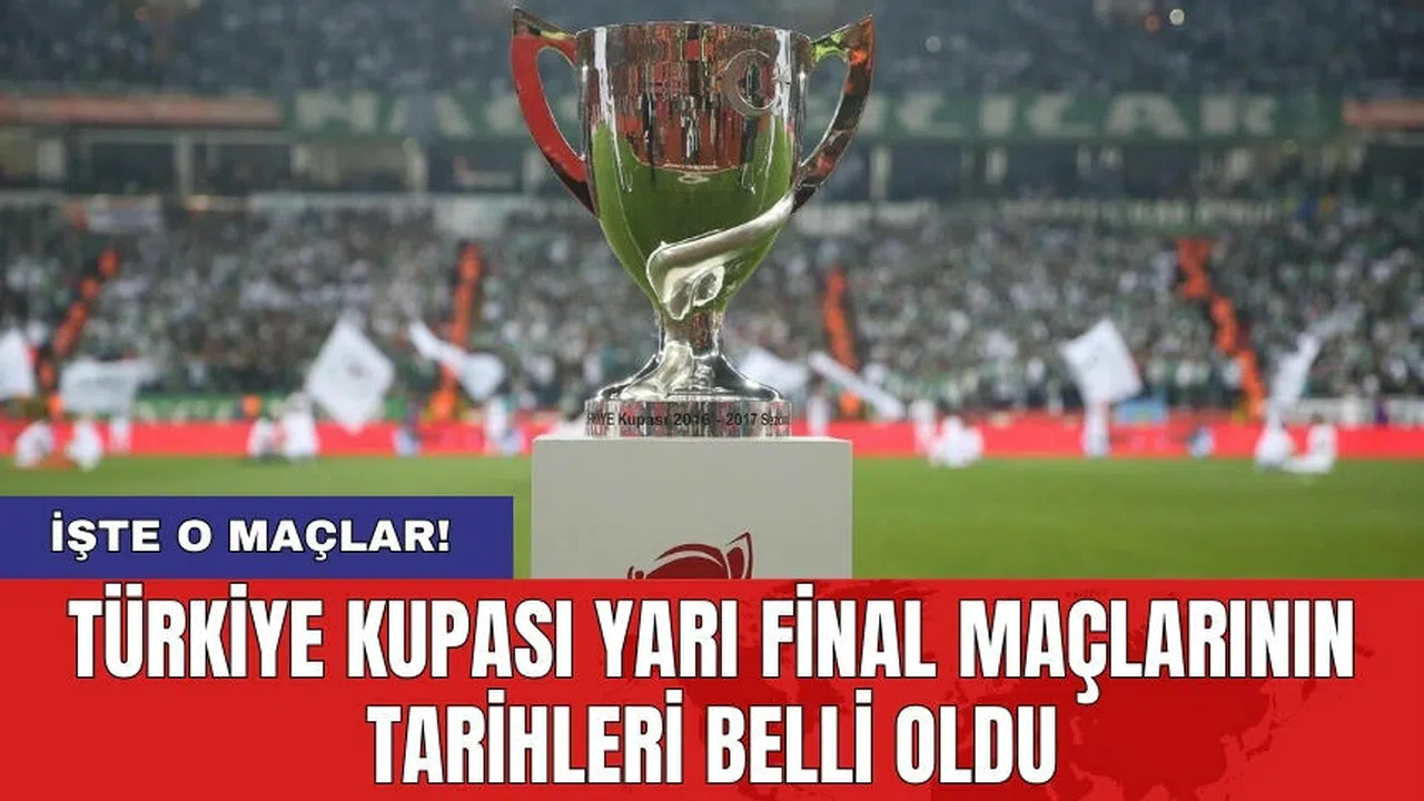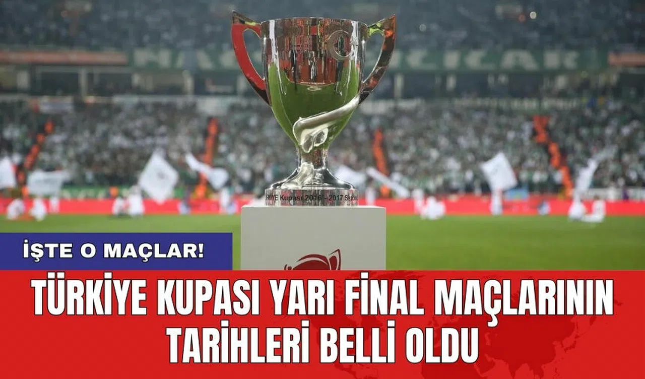 Türkiye Futbol Federasyonu tarafından yapılan açıklamaya göre, Ziraat Türkiye Kupası'nın yarı final maçları için tarihler belirlendi. İlk maçlar 23-24 Nisan'da, ikinci maçlar ise 8-9 Mayıs'ta gerçekleştirilecek. Final maçı ise 23 Mayıs tarihinde oynanacak.