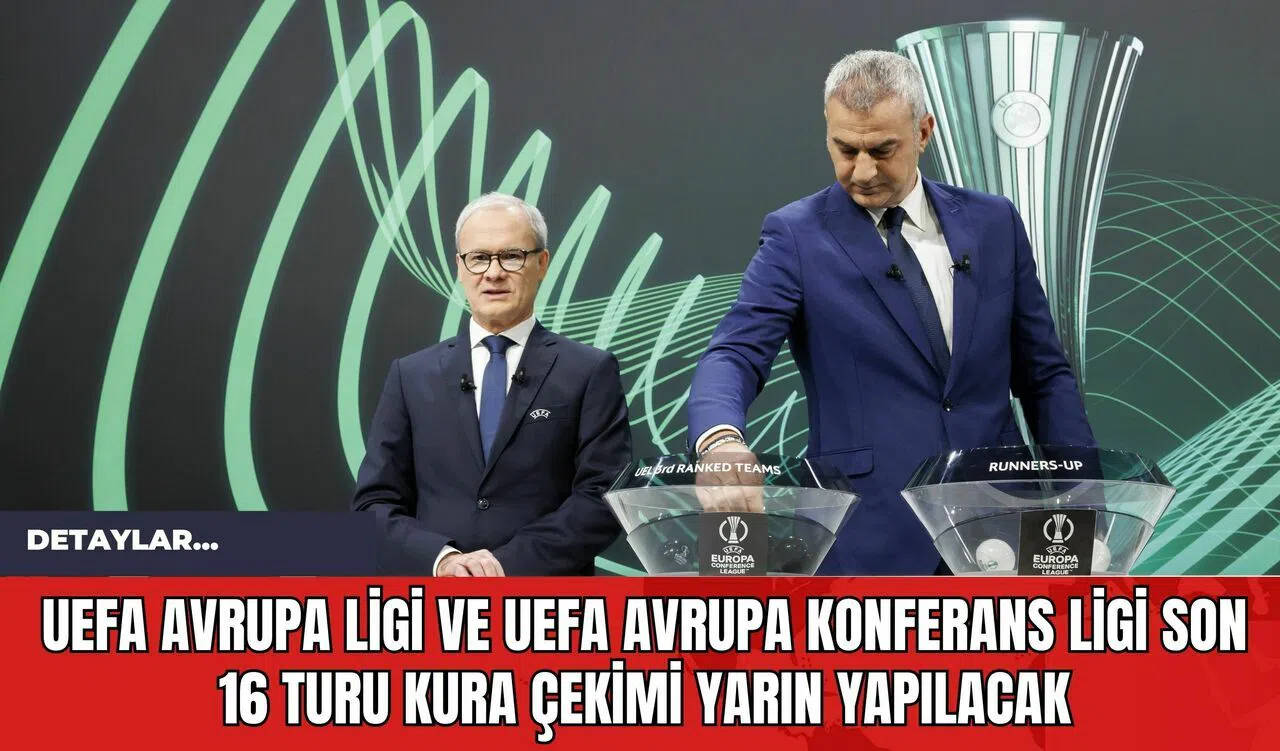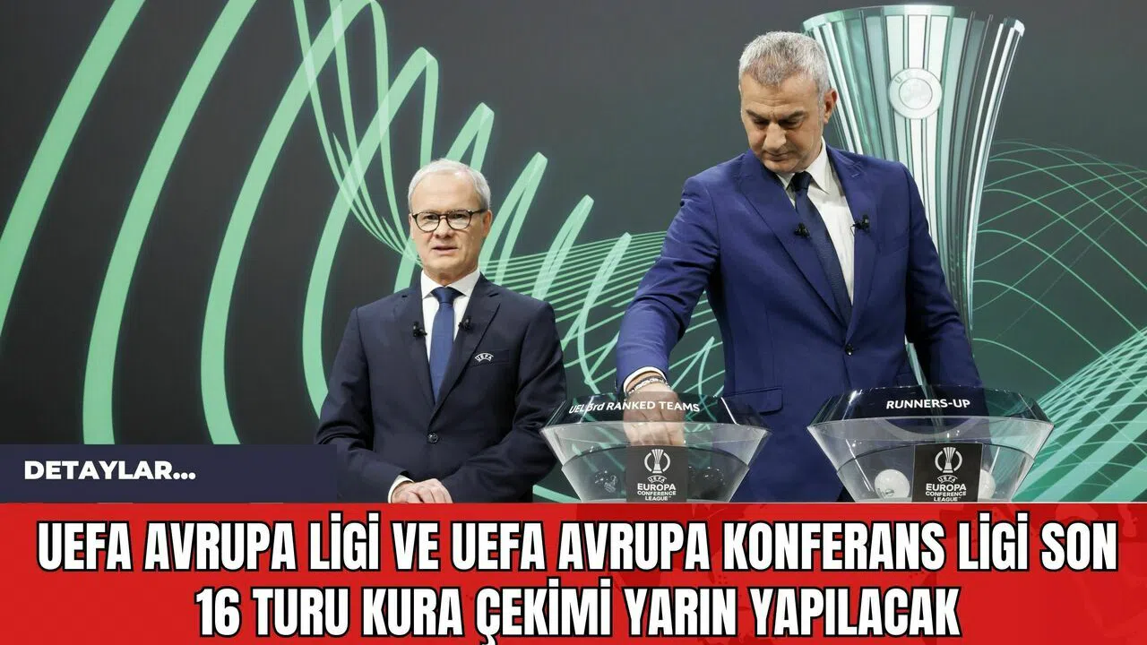 UEFA Avrupa Ligi ve UEFA Avrupa Konferans Ligi'nde son 16 turunun kuraları yarın çekilecek. İsviçre'nin Nyon kentindeki UEFA Genel Merkezi'nde gerçekleştirilecek UEFA Avrupa Ligi kurası TSİ 14.00, UEFA Avrupa Konferans Ligi kura çekimi ise TSİ 15.00'te başlayacak. Kura çekiminde Avrupa Ligi'nde play-off turunu geçmesi halinde Galatasaray'ın, Avrupa Konferans Ligi'nde de grubunu lider bitirerek doğrudan son 16 turuna yükselen Fenerbahçe'nin rakipleri belli olacak.