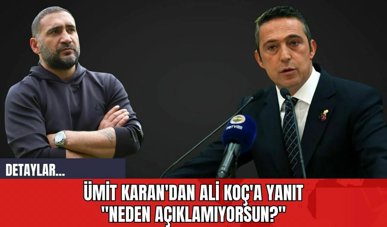 Eskişehirspor'daki dönemine ilişkin yaptığı açıklamaları Fenerbahçe Başkanı Ali Koç'un gündeme getirmesine tepki gösteren spor yorumcusu Ümit Karan, "Bana 2011 şike davası mahkemesinde 'Fenerbahçe'den para aldın mı?' diye sordular. Ben de 'Fenerbahçe'den neden para alayım? Ben Fenerbahçe'nin şampiyon olmasını istemem.' dedim. Ben bunu teşvikten suçlandığım mahkemede kendimi savunmak için söyledim, X bir maçtan sonra söylemedim. Ben bunları söylerken Ali Koç da arka sırada oturuyordu. Bunları neden açıklamıyor merak ediyorum." şeklinde konuştu.