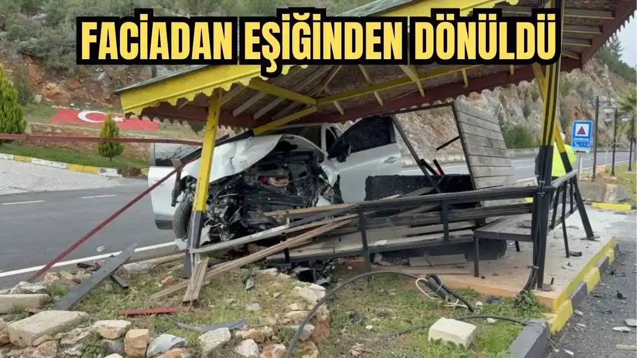 Antalya'nın Gazipaşa ilçesi Güney Mahallesi'nde Güney Jandarma Komutanlığı önünde meydana gelen kazada, Gazipaşa yönünden Anamur yönüne giden Mikail A. yönetimindeki 63 AJZ 031 plakalı otomobil, sürücüsünün direksiyon hakimiyetini kaybetmesi sonrası refüjdeki jandarma bekleme noktası girdi. Meydana gelen kazada Mikail A. ile araçta bulunan Bircan A., Ahsen Neva A. ve Yağız A. yaralandı.
