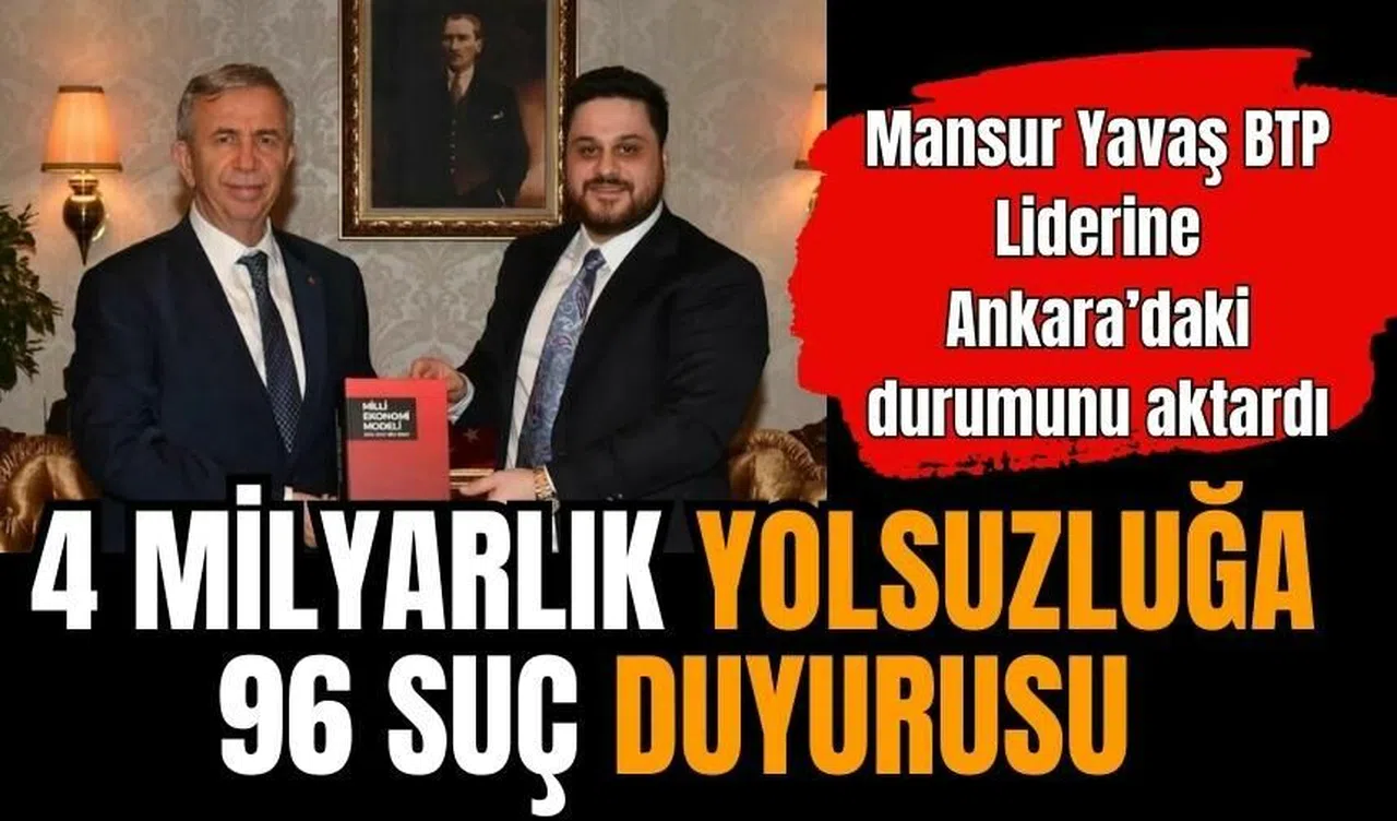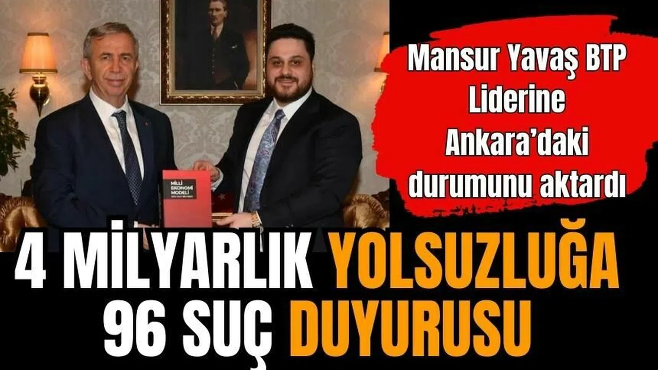 BTP Genel Başkanı Hüseyin Baş yaptığı sosyal medya paylaşımında Mansur Yavaş ile görüşmesinden bir açıklama yaptı. Hüseyin Baş "Mansur Yavaş ile bir telefon görüşmesi gerçekleştirdik. Kendisi göreve gelir gelmez yaklaşık 4 milyar TL’lik yolsuzluğa ilişkin 96 suç duyurusunda bulunmuş. O günkü güncel döviz değeri yaklaşık 1 milyar dolar olan bu dosyaların 13’ü hakkında takipsizlik kararı verilmiş ve sadece 2 dosyaya dava açılmış, 81 dosya halen bekletilmekteymiş" şeklinde konuştu.