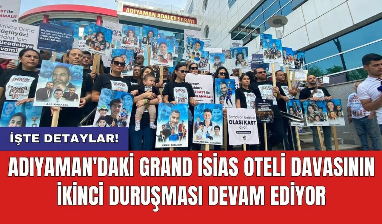 6 Şubat depreminde yıkılan, 35’i Gazimağusa Türk Maarif Koleji kafilesinden 72 kişinin hayatını kaybettiği Grand İsias Otel davasının ikinci duruşması Adıyaman’da başladı. İddianamede, 3'ü tutuklu 11 sanık hakkında "bilinçli taksirle birden fazla insanın ölümüne ve yaralanmasına neden olma" suçundan 22 yıl 6 aya kadar hapis cezası talep ediliyor. Davayı, KKTC Başbakanı Ünal Üstel, KKTC Başbakan Yardımcısı ve Turizm, Çevre Bakanı Fikri Ataoğlu, KKTC İçişleri Bakanı Dursun Oğuz, KKTC Milli Eğitim Bakanı Nazım Çavuşoğlu, iktidar ve ana muhalefet parti milletvekilleri de takip ediyor.