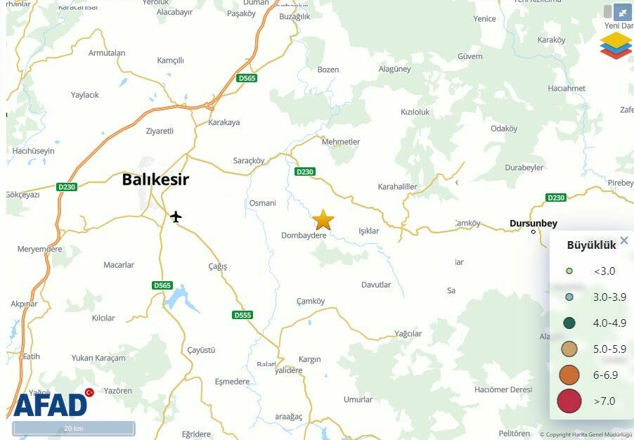 Afet ve Acil Durum Yönetimi Başkanlığı (AFAD) Deprem Dairesi, Balıkesir'de 3.2 büyüklüğünde bir deprem meydana geldiğini duyurdu.