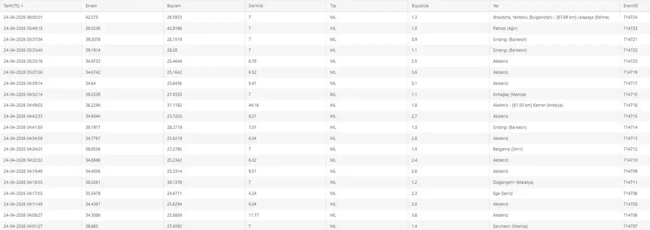 Afet ve Acil Durum Yönetimi Başkanlığı (AFAD) tarafından paylaşılan verilere göre, ilk deprem saat 06.18 sularında Girit Adası merkezli olarak gerçekleşti. Yerin yaklaşık 7 kilometre derinliğinde meydana gelen 5.9 büyüklüğündeki bu depremin ardından büyüklüğü 3.8'e ulaşan 15 sarsıntı daha kaydedildi.