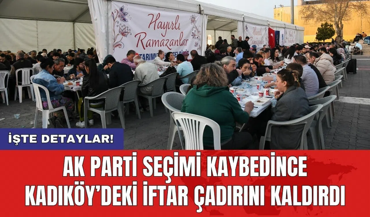 AK Parti İstanbul Büyükşehir Belediye Başkan Adayı Murat Kurum’un seçim çalışmaları kapsamında Kadıköy Rıhtım’da kurulan iftar çadırı, seçimden hemen sonra kaldırıldı. Vatandaşlar, Ramazan ayında olunmasına rağmen alınan bu karara tepki gösterdi.