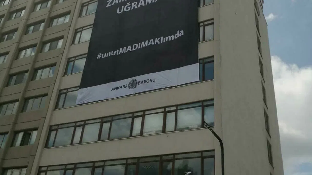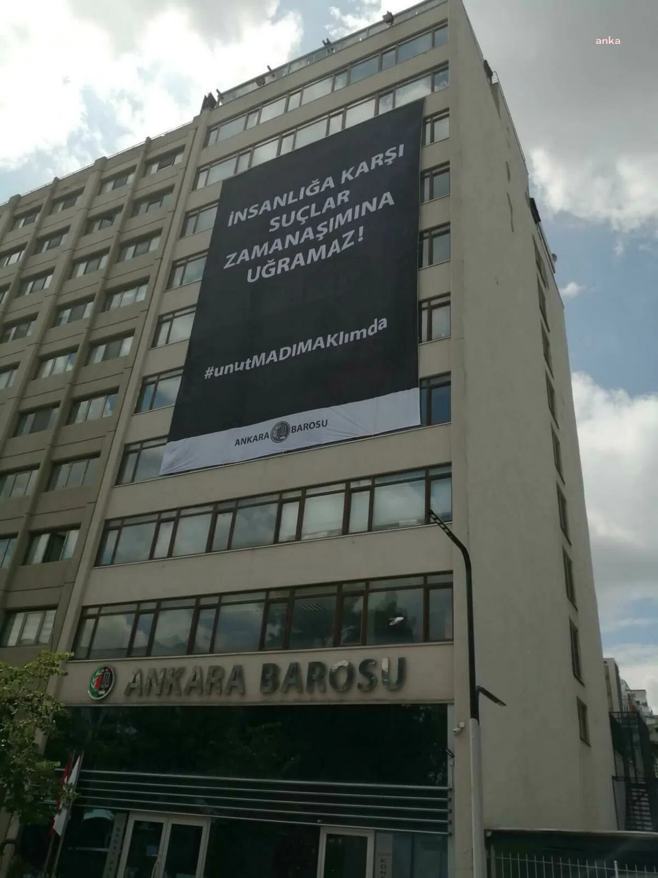 Ankara Barosu, Madımak Katliamı’nın 30. yılında Kızılay’daki baro binasına pankart astı. Pankarta, “İnsanlığa karşı suçlar zamanaşımına uğramaz” ifadeleri yazıldı.