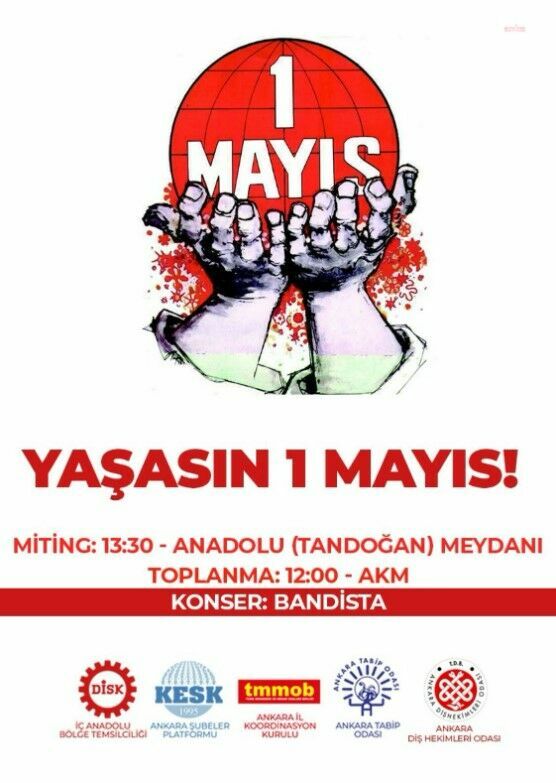 Ankara'daki 1 Mayıs kutlamalarının merkezi olan Tandoğan Meydanı, DİSK İç Anadolu Bölge Temsilciliği, KESK Ankara Şubeler Platformu, TMMOB Ankara İl Koordinasyon Kurulu, Ankara Tabip Odası (ATO) ve Ankara Diş Hekimleri Odası tarafından "Yaşasın 1 Mayıs" sloganıyla renklendirilecek.
