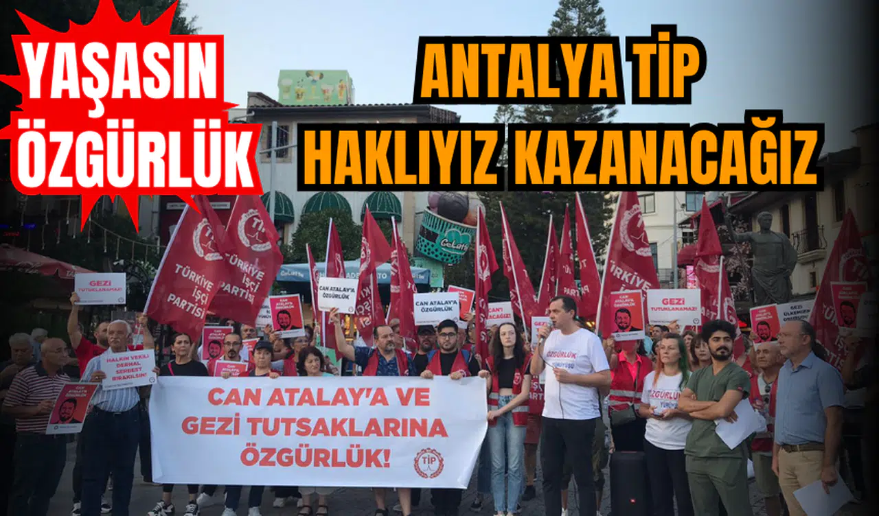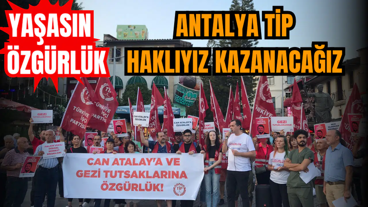 Hatay’dan Ankara’ya başlayan Özgürlük Yürüyüşü’ne karşı Türkiye İşçi Partisi Antalya İl Başkanlığı da mini bir yürüyüş yaptı. Yürüyüşün sonunda Attalos Meydanı’nda grup adını basın açıklaması yapan Avukat Tuncay Koç, “Anayasa Mahkemesi Genel Kurulu yarın önemli bir karar verecek. Halen hukuksuz biçimde Silivri zindanında tutulan Hatay milletvekilimiz Can Atalay hakkında bir karar verilecek. Can Atalay hakkında kesin bir gerçek bulunuyor: Atalay’ın vekil adaylığı hukuka uygun şekilde olmuştur, Hatay halkı tarafından seçilmiştir, TBMM İnsan Hakları Komisyonunun üyesidir, danışmanları vardır, vekillik görevini yapması önünde hiçbir engel yoktur ve hukuksuz şekilde cezaevindedir. Anayasa Mahkemesi’nin bu basit ve kesin gerçeği tespit etmesi gerekir. Anayasa’nın açık hükümleri bunu gerektirir. Mesele yalnız Can Atalay meselesi de değildir. Cezaevinde, siyasi fikirleri nedeniyle bulunan tüm tutsaklar derhal serbest bırakılmalıdır. Bir hukuk katliamı olan Gezi Davası’ndan hükümlü bulunanlar derhal serbest bırakılmalıdır” dedi.