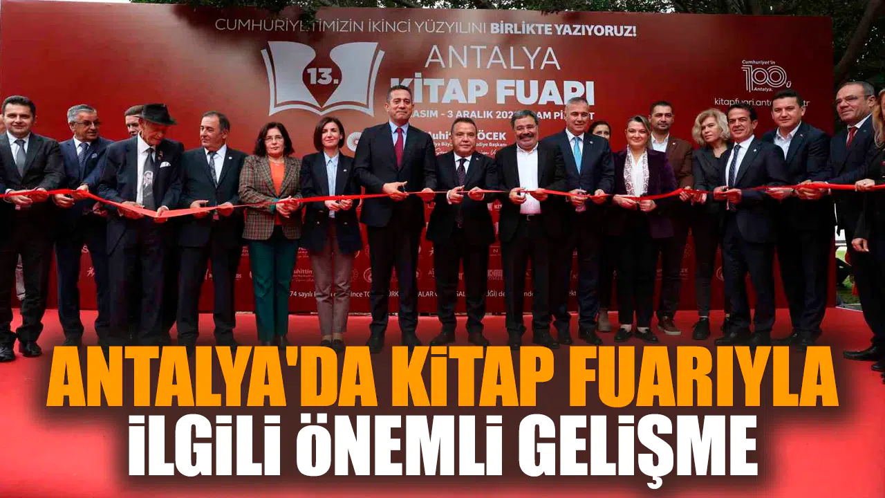 Antalya Kitap Fuarı, 13. kez kapılarını açtı. Antalya Büyükşehir Belediyesi tarafından düzenlenen 13. Antalya Kitap Fuarı, “Cumhuriyet’imizin ikinci yüzyılını birlikte yazıyoruz” sloganıyla kitapseverleri ağırlıyor. Cam Piramit Kongre ve Fuar Merkezi’nde gerçekleşen fuar, 10 gün boyunca sürecek. Fuarın onur konuğu ise ünlü yazar Ahmet Ümit.