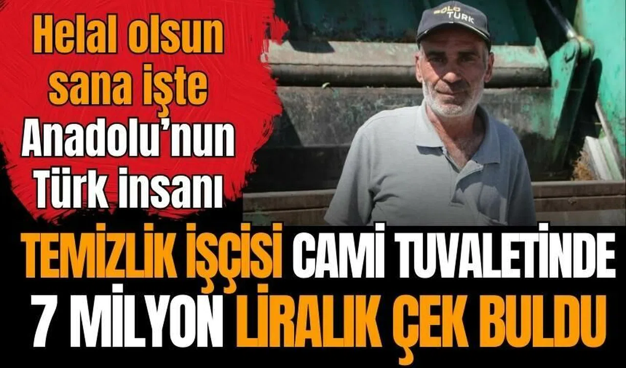 Antalya Serik Belediyesi Temizlik İşleri Müdürlüğü'ne bağlı olarak çalışan Hasan Ateş, bir caminin tuvaletinde zarf içinde tam 7 milyon milyon TL'lik çek buldu. Okuma yazma bilgisi olmayan Hasan Ateş, bulduğu kağıdın aslında çek olduğunu öğrenince soluğu Serik İlçe Emniyet Müdürlüğü'nde aldı. Alanya ilçesinde bir firmaya ait olduğu belirlenen çek, sahibine ulaştırmak için polisler tarafından araştırma ve çalışma başlatıldı.