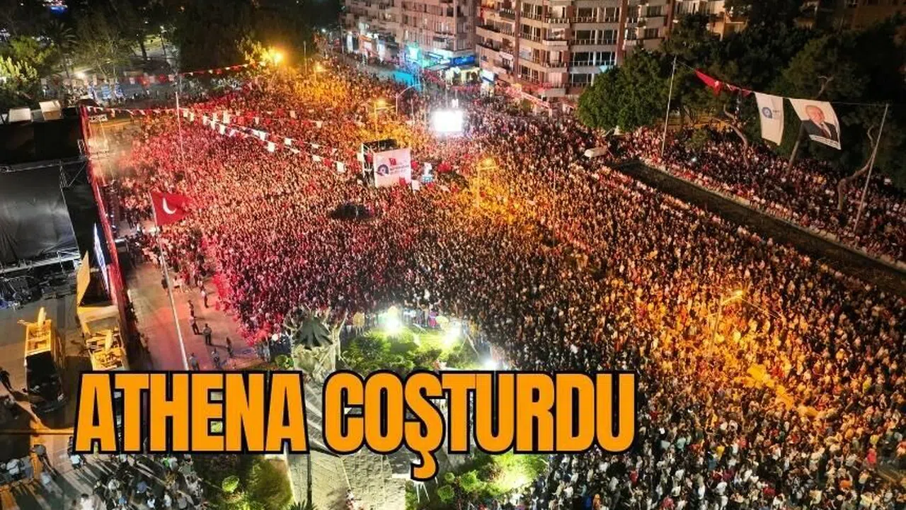 30 Ağustos Zafer Bayramı kutlama töreninde, Başkan Böcek’in konuşmasının ardından, Athena gurubu sahne aldı. Athena, sevilen şarkılarıyla Cumhuriyet Meydanı’nı dolduran binlerce Antalyalıyı coşturdu. Antalyalılar Athena’nın şarkılarına hep bir ağızdan eşlik etti. Başkan Muhittin Böcek de Athena grubuna teşekkür ederek, çiçek ve Atatürk portresi hediye etti.