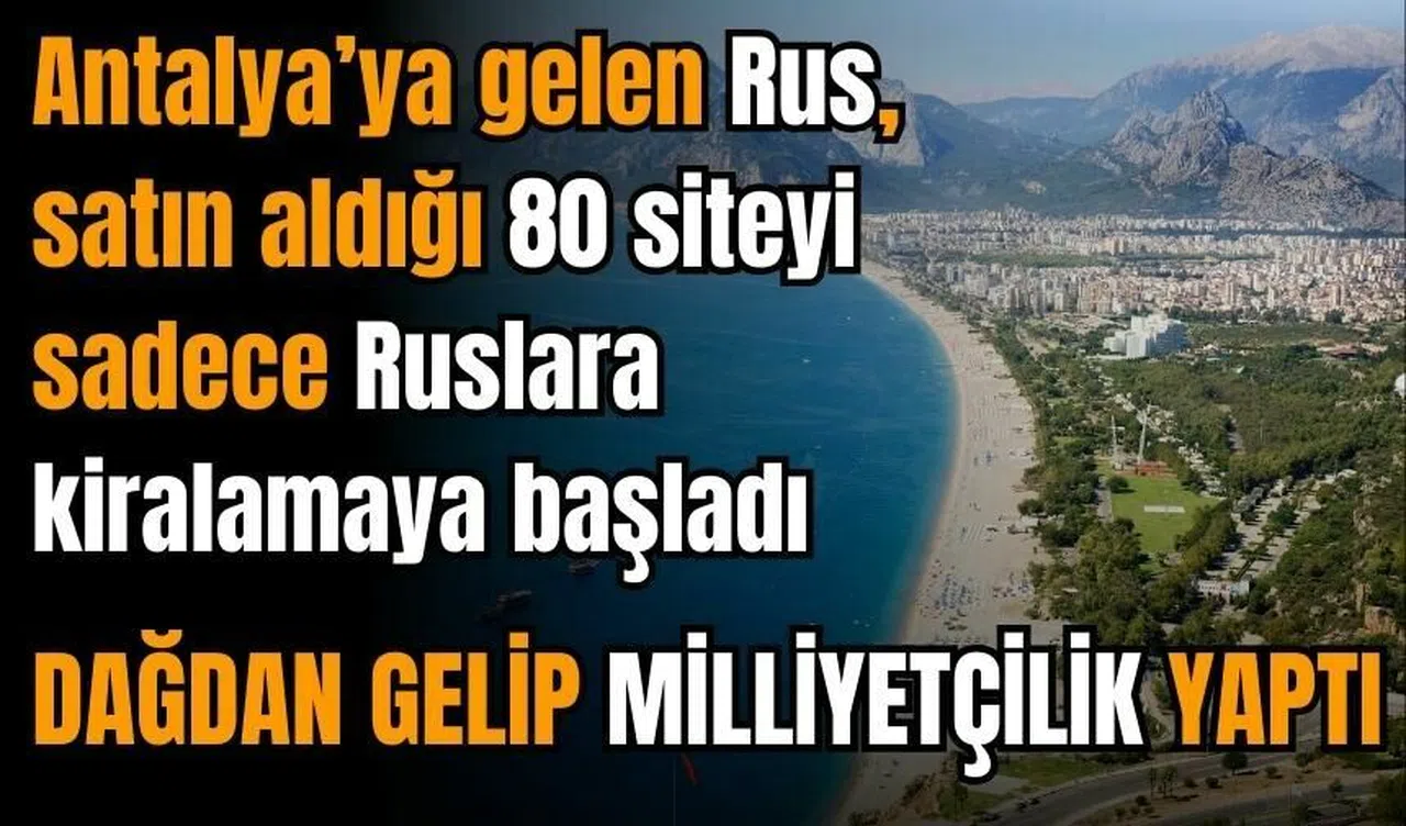 Yabancıların hem tatil yeri hem de yazlığı gelen Antalya'da sosyal medyada gündem olan konut satışı skandal yarattı. Akdeniz Turistik Otelciler ve İşletmeciler Birliği Başkanı Kaan Kavaloğlu, bir Rus'un Antalya'da satın aldığı 80 evi otel olarak işlettiğini açıkladı.