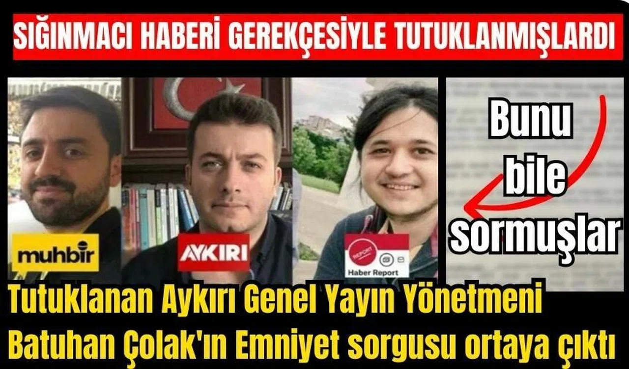 'Sığınmacı karşıtı' haberlerde kin ve nefreti yayma gerekçesiyle gözaltına alınan Aykırı Genel Yayın Yönetmeni Batuhan Çolak, Ajans Muhbir'in yöneticisi Süha Çardaklı ve Haber Report hesabının yöneticisi polisteki sorgularının ardından çıkartıldıkları mahkemede tutuklanarak cezaevine gönderilmişti. Cumhuriyet yazarı, gazeteci Murat Ağırel, Çolak'ın Emniyet sorgusu ve mahkeme tutanağına ulaştı. Çolak'a sorulan sorular dikkat çekti.