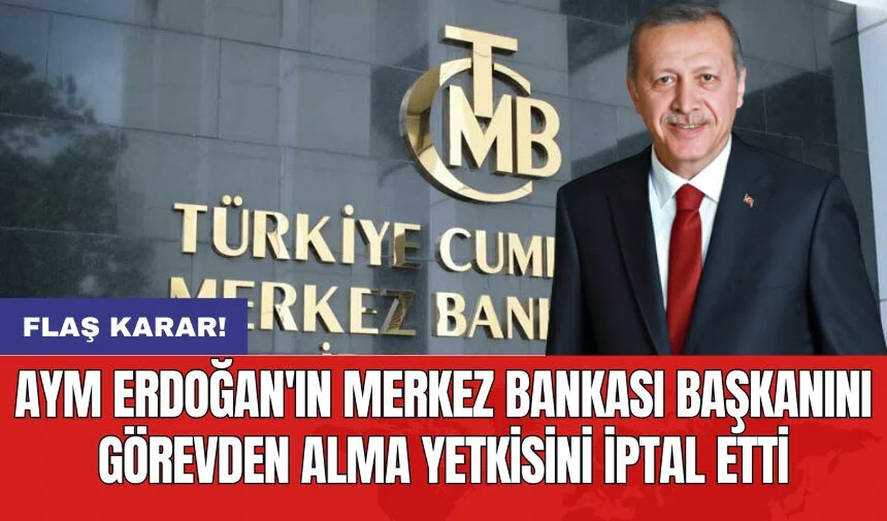 AYM, Cumhurbaşkanı'nın TCMB başkanını atama yetkisini anayasaya aykırı buldu ve bu düzenlemeyi iptal etti. Bu kararla birlikte, Cumhurbaşkanı'nın TCMB başkanını görev süresi dolmadan değiştirme yetkisi de sona ermiş oldu.