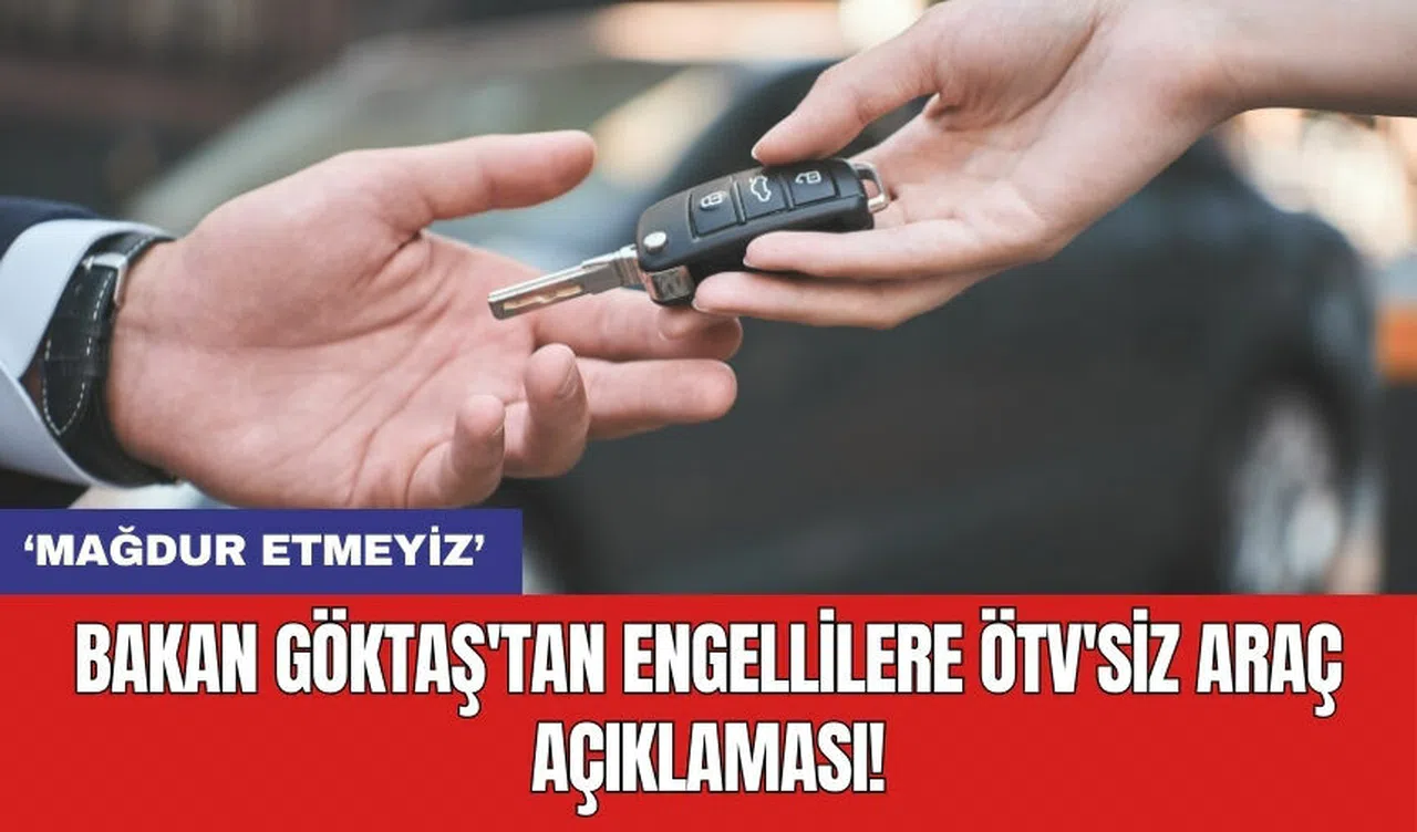 Bakan Göktaş, engellilere yönelik ÖTV'siz araç desteği konusunda yeni bir düzenlemenin yapılacağı yönündeki soru üzerine, engelli vatandaşların bu konuda kazanılmış haklarının suistimal edilebildiğine ve bunun kamuoyunda rahatsızlık oluşturduğuna dikkati çekti.