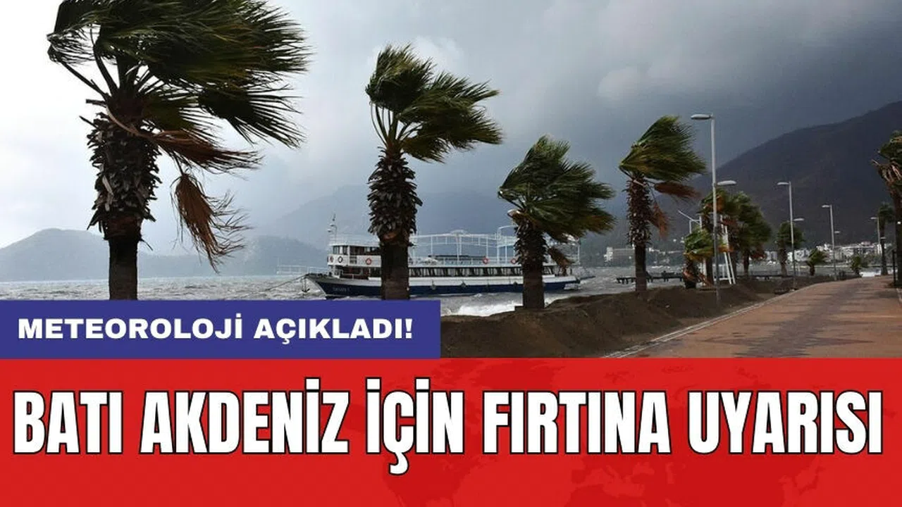 Meteoroloji Genel Müdürlüğünden yapılan tahmine göre, Batı Akdeniz'in batısındaki yarın (Perşembe) öğle saatlerinden itibaren batı ve kuzeybatıdan 6 ila 8 kuvvetinde (50-70 km/saat) fırtına şeklinde eseceği tahmin ediliyor.