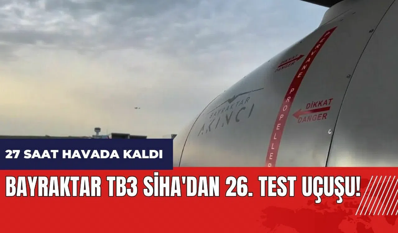 Baykar tarafından geliştirilen Bayraktar TB3 SİHA, 27 saatlik uçuşunu başarıyla tamamladı. Testler, Tekirdağ'ın Çorlu ilçesindeki AKINCI Uçuş Eğitim ve Test Merkezi'nde gerçekleştirildi.