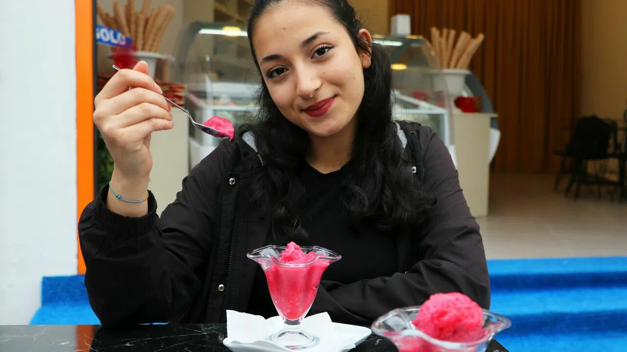 Dondurma yiyen genç kız ise tadının farklı olduğunu ancak çok beğendiğini söyledi.