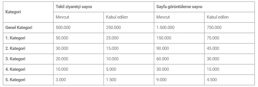 Asgari Ziyaretçi ve Sayfa Görüntüleme Şartları
