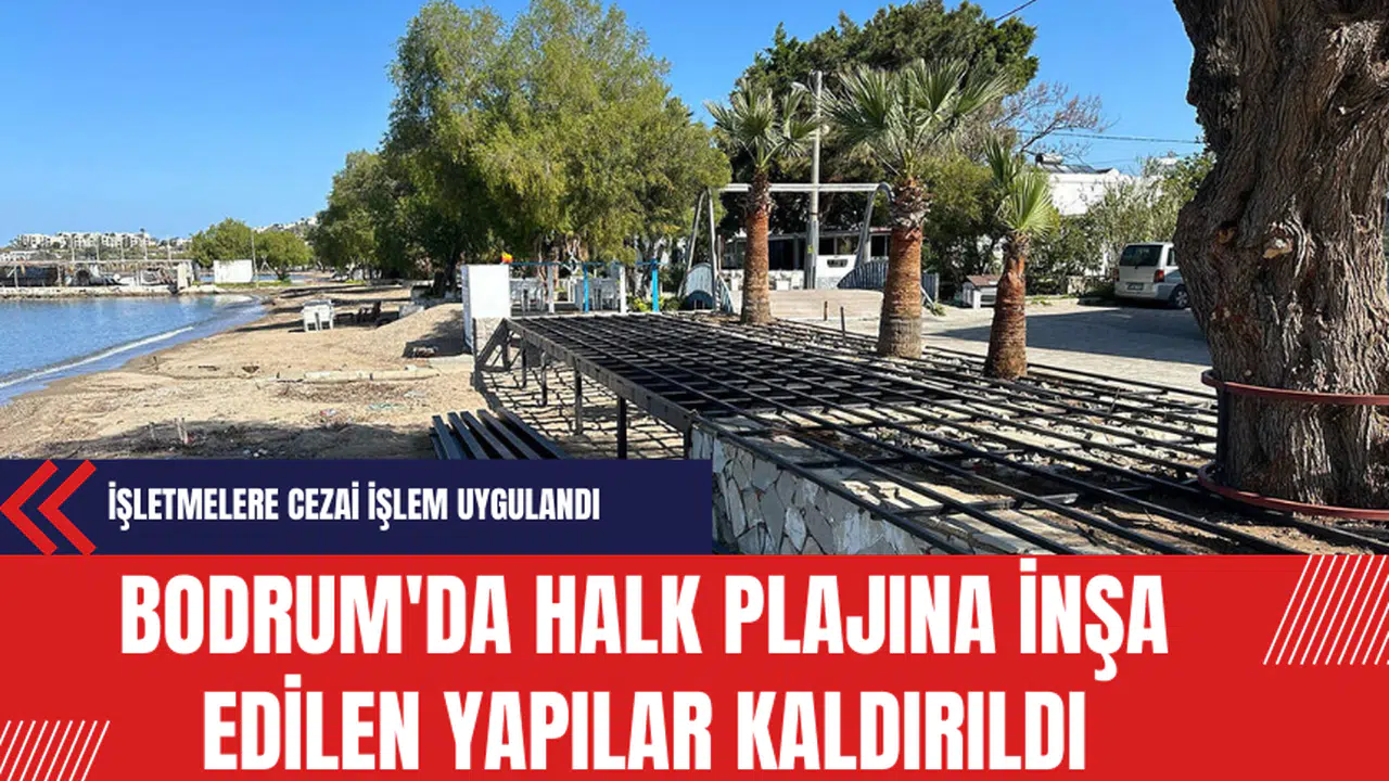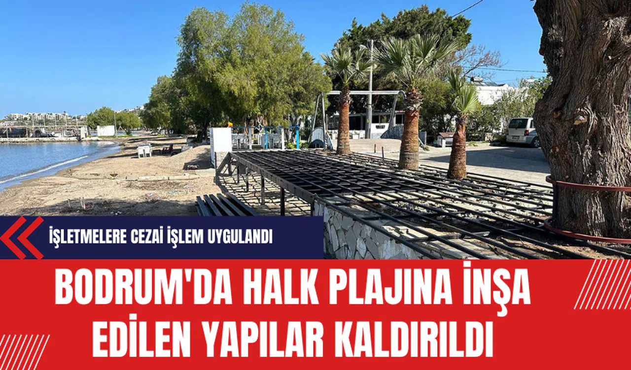 Muğla'nın Bodrum ilçesinde, Yalıkavak Mahallesi Plaj Caddesi'ndeki mavi bayraklı halk plajına iki işletme tarafından inşa edilen yapılar, hızlı bir müdahaleyle kaldırıldı ve işletmelere cezai işlem uygulandı.