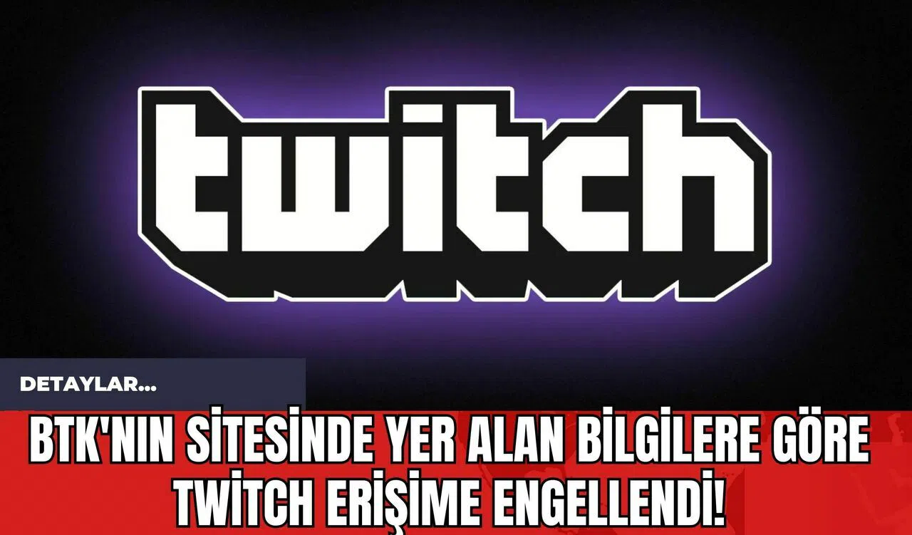 Bilgi Teknolojileri ve İletişim Kurumu'nun (BTK) internet sitesindeki 'Site Bilgileri Sorgu Sayfası'nda yapılan sorgulamaya göre, popüler canlı yayın platformu Twitch'in 22 Şubat 2024 tarihli ve 2024/7 sayılı Milli Piyango İdaresi Genel Müdürlüğü kararıyla erişime engellendiği belirtiliyor.