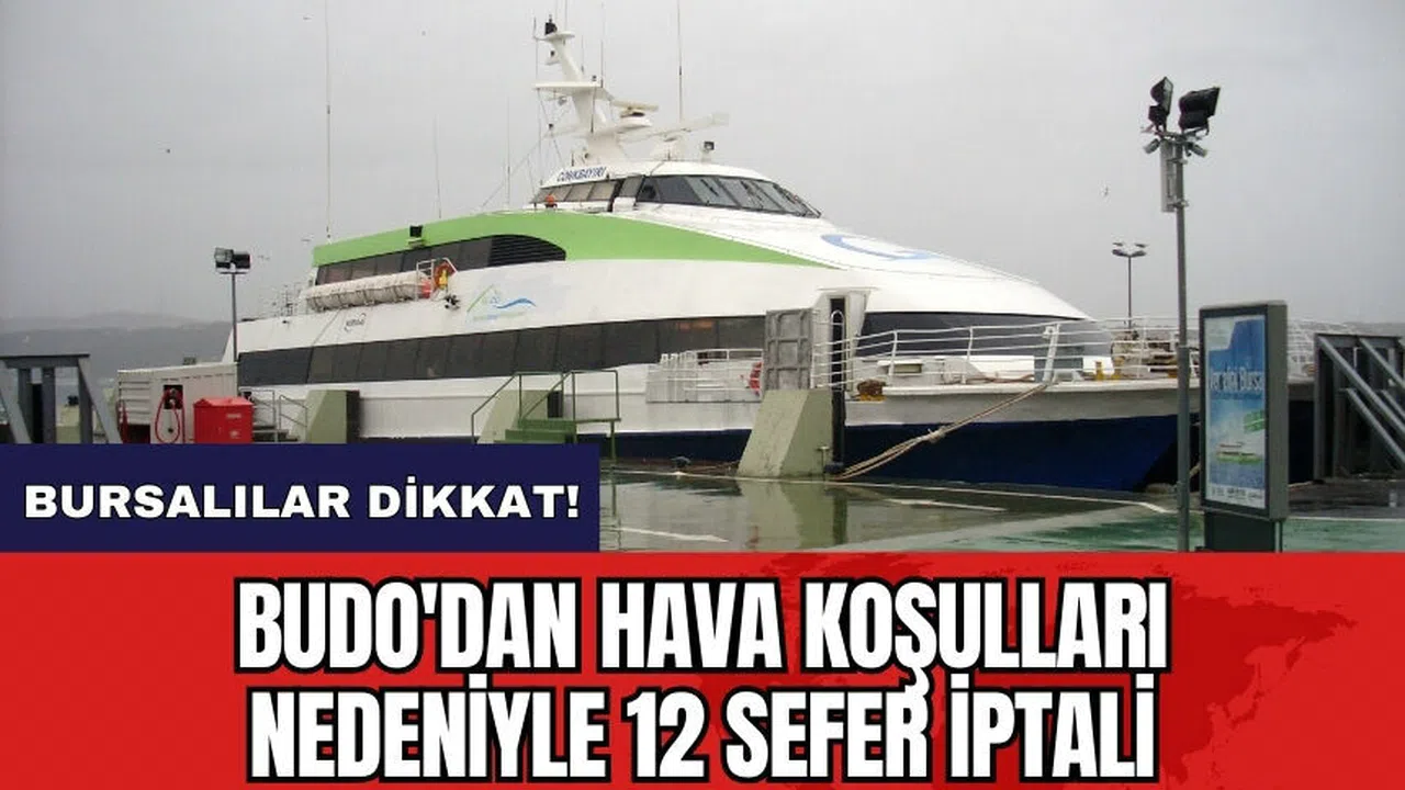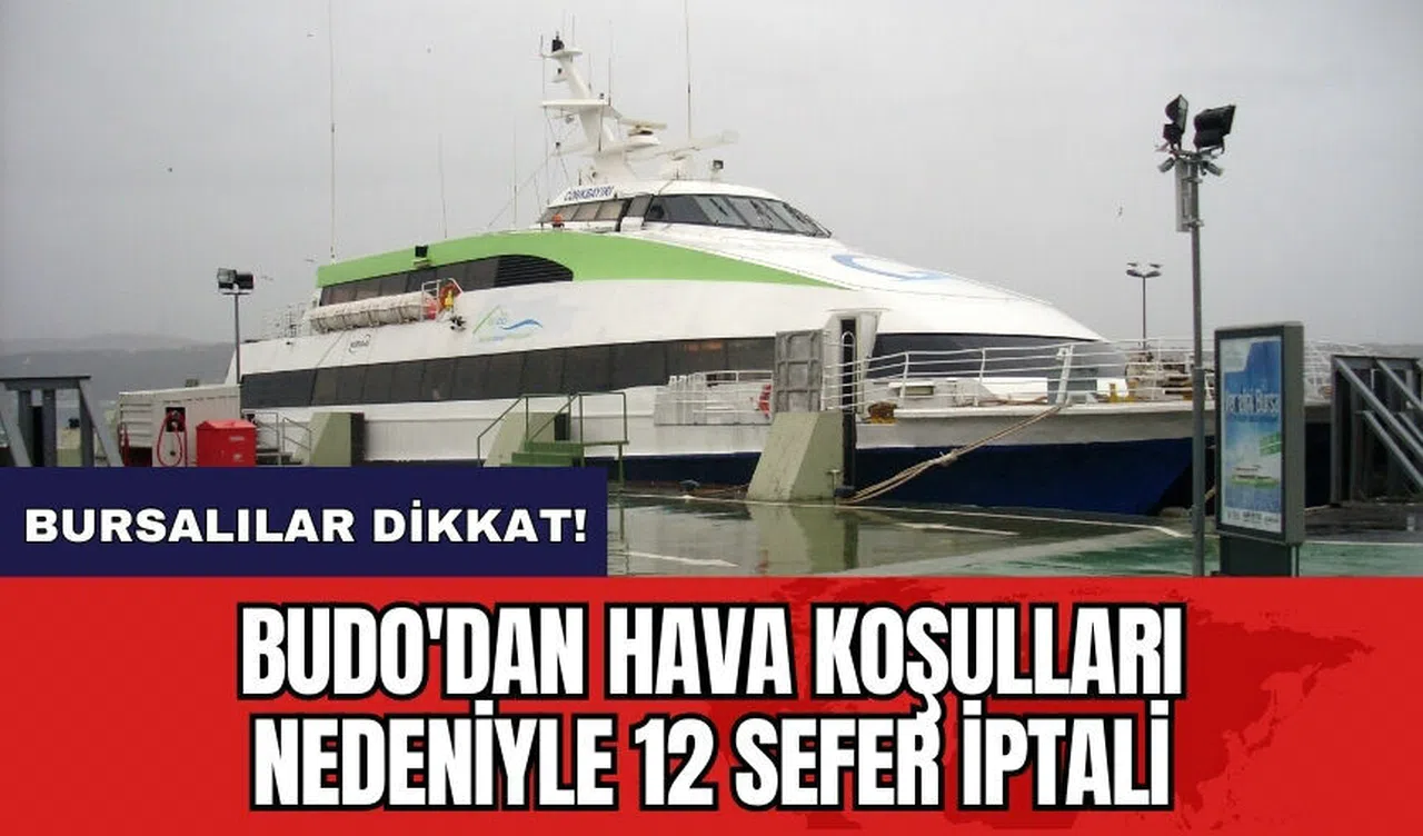 BUDO'nun resmi internet sitesinde yapılan duyuruda, saat 07.00, 09.30, 16.00 ve 19.00'daki Bursa (Mudanya)-İstanbul (Eminönü/Sirkeci) seferleri ile 08.30, 11.30, 16.30 ve 19.30'daki İstanbul (Eminönü/Sirkeci)-Bursa (Mudanya) seferlerinin olumsuz hava koşulları nedeniyle iptal edildiği belirtildi.