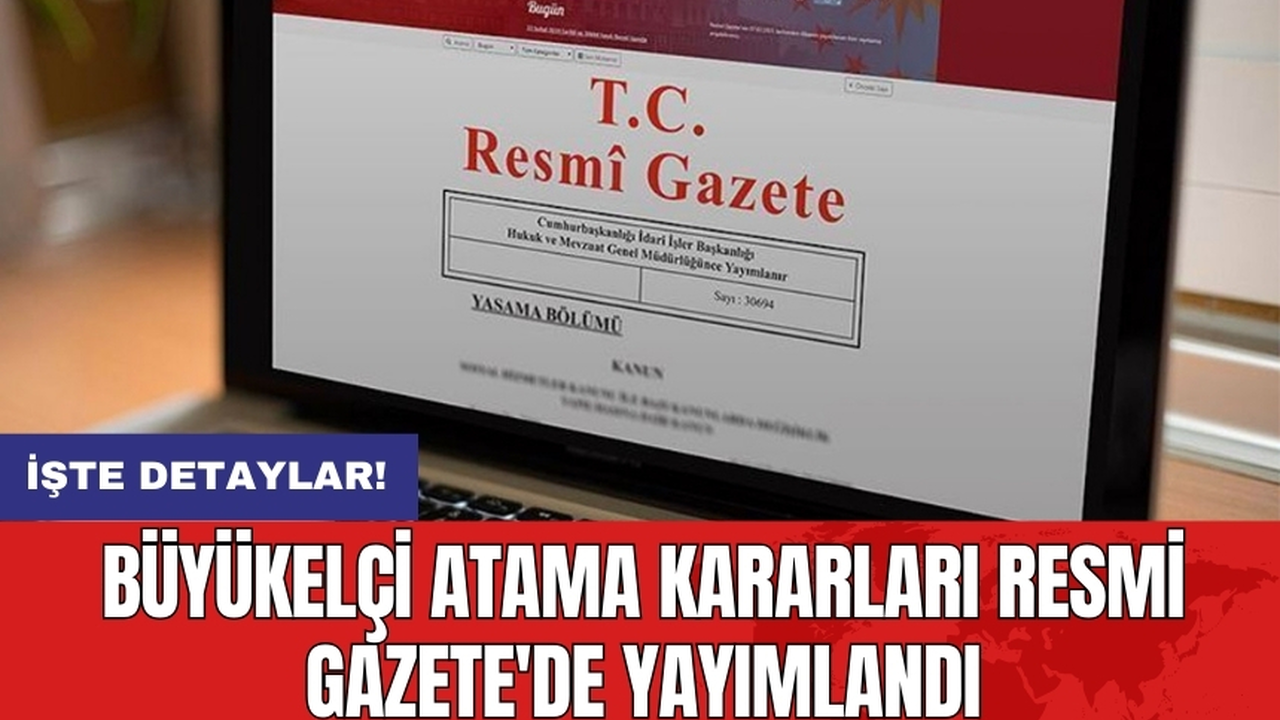 Cumhurbaşkanı Recep Tayyip Erdoğan'ın imzasıyla yapılan büyükelçi atamalarına ilişkin kararlar, Resmi Gazete'de yayımlandı.