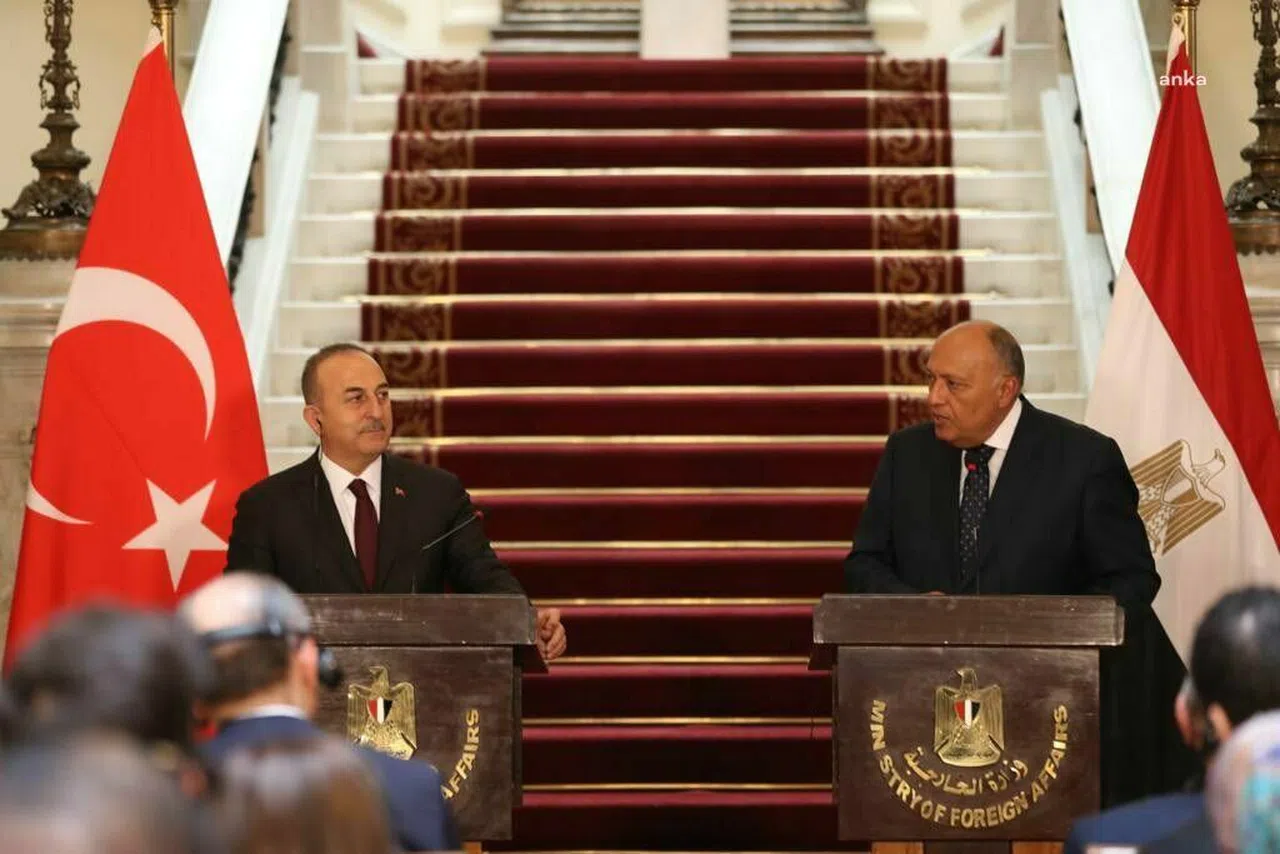 Dışişleri Bakanı Mevlüt Çavuşoğlu, Mısır Dışişleri Bakanı Semih Şükrü ile Kahire'deki Tahrir Sarayı'nda yaptıkları baş başa ve heyetler arası görüşmelerin ardından, ortak açıklama yaptı.