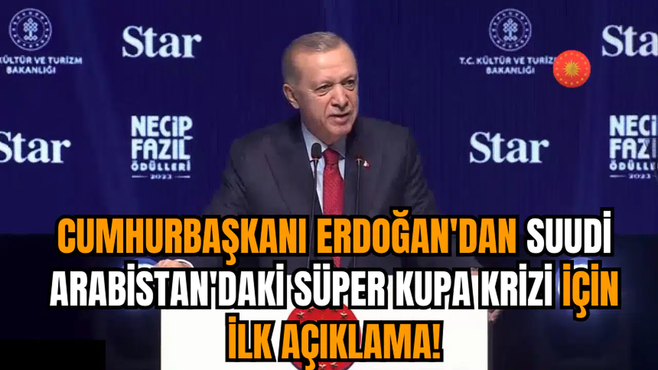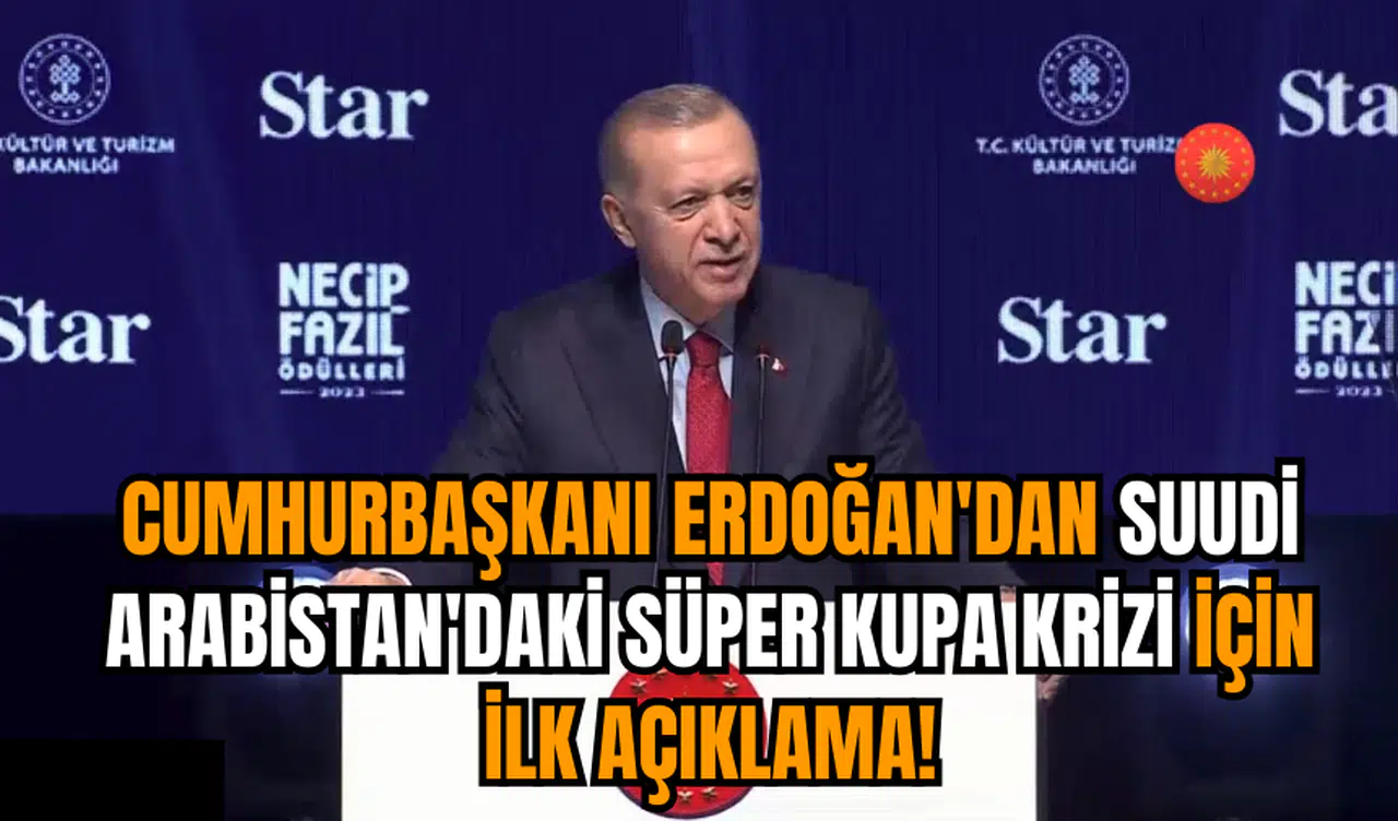 Cumhurbaşkanı Recep Tayyip Erdoğan, Necip Fazıl Ödülleri Töreni'nde gündeme ilişkin açıklamalarda bulundu. Konuşmasında, Fenerbahçe ile Galatasaray arasında Suudi Arabistan'da oynanacak Süper Kupa finalinin Atatürk posterlerine izin verilmemesi sonrasında iptal edilmesine değinen Erdoğan konuyla ilgili ilk kez konuştu.