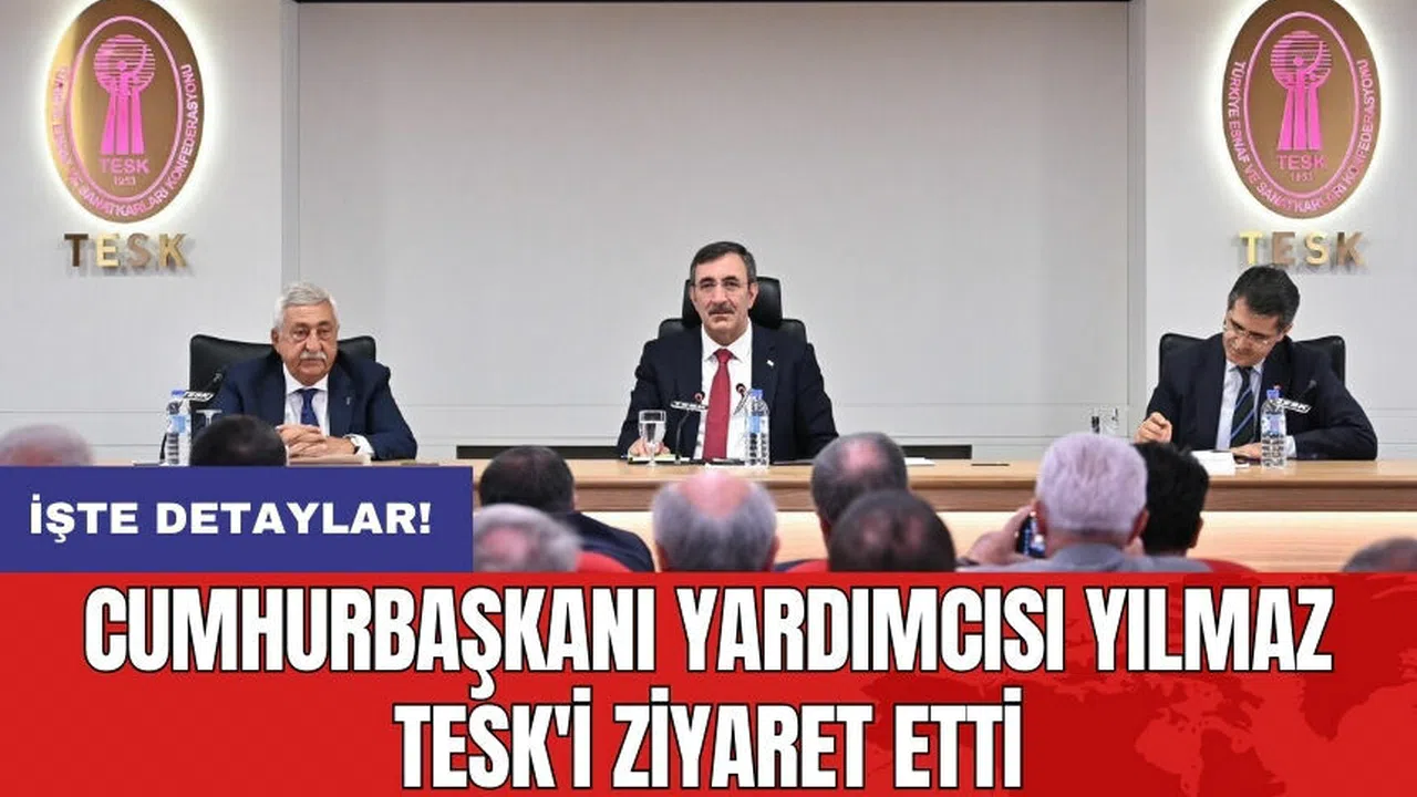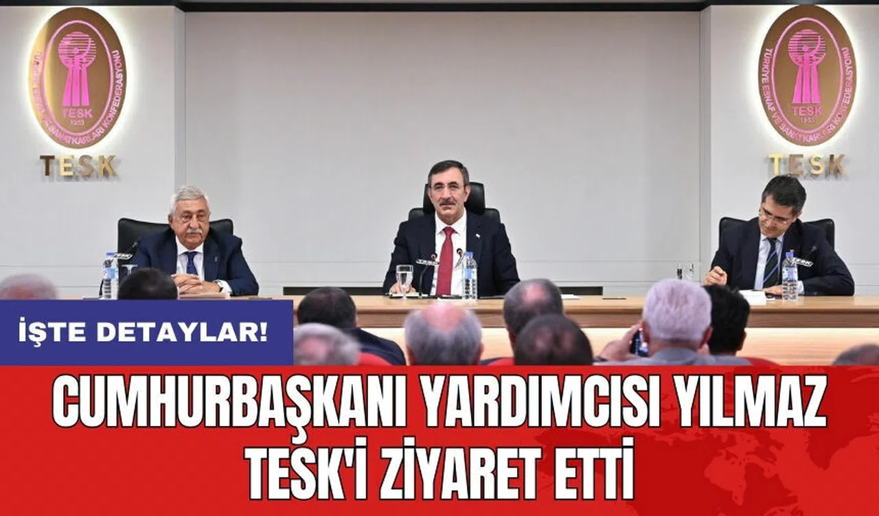 Cumhurbaşkanı Yardımcısı Cevdet Yılmaz ve Cumhurbaşkanlığı Strateji ve Bütçe Başkanı İbrahim Şenel, Türkiye Esnaf ve Sanatkârları Konfederasyonu (TESK) Genel Merkezi'ni ziyaret etti. Toplantıya TESK Yönetim ve Denetim Kurulu üyeleri ile İstanbul, İzmir ve Bursa Esnaf ve Sanatkarlar Odaları Birlikleri Başkanları da katıldı. Toplantının ana gündem maddesi, Orta Vadeli Program çerçevesinde esnaf ve sanatkarlara yönelik yapılacak çalışmalar oldu.