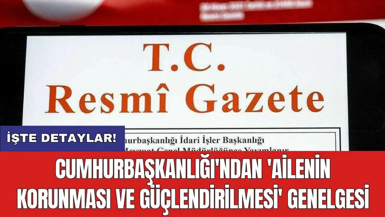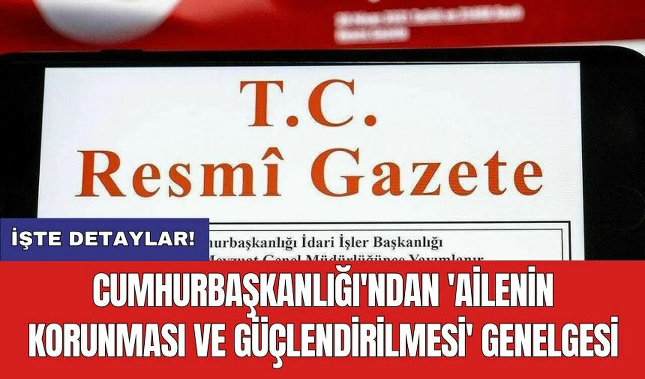 Cumhurbaşkanlığı'nın Ailenin Korunması ve Güçlendirilmesi Genelgesi, Resmi Gazete'de yayımlandı. Bu genelge, aile yapısının korunması ve güçlendirilmesi konusunda önemli adımları içeriyor. İşte, detaylar: