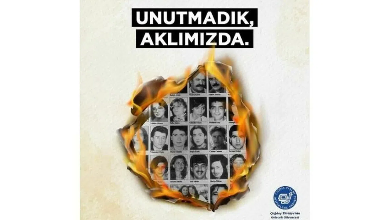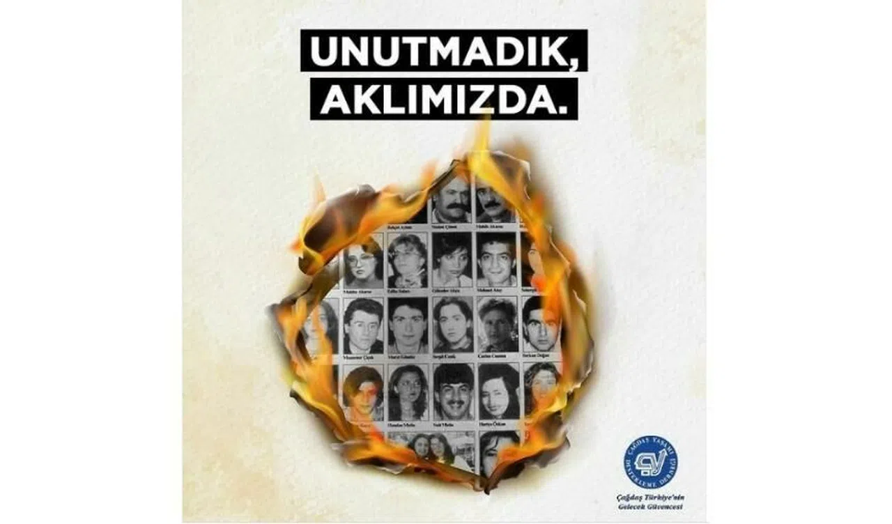 Sivas Katliamı, gerici ve yobaz bir grubun çağdaşlığa, düşünce özgürlüğüne, barışa ve kardeşliğe yönelik korkunç bir saldırısıydı. Bu katliamda kaybettiğimiz canları saygıyla anarken hukuka, demokrasiye, laik Cumhuriyetin kazanımlarına olan bağlılığımızı sürekli ve yeniden vurgulamak zorunda olduğumuzu görüyoruz.