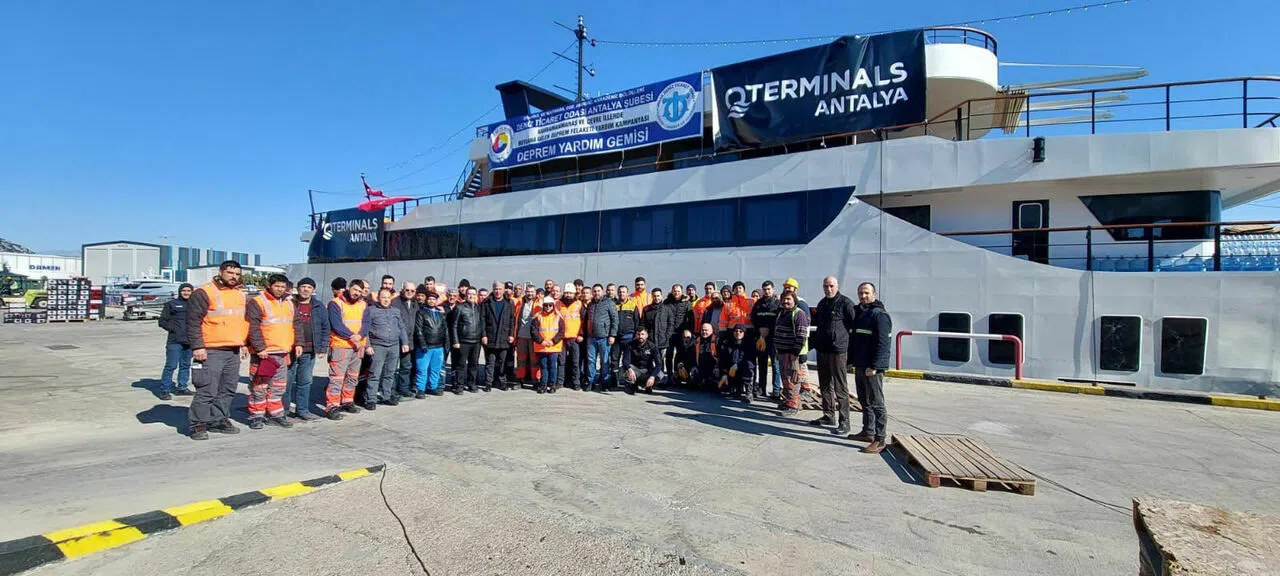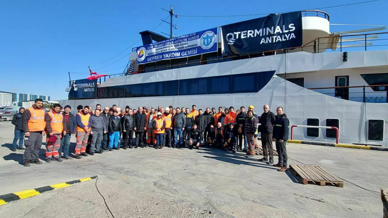 DTO Antalya Şube Başkanı Ahmet Çetin yaptığı açıklamada, kısa sürede organize olarak 120 tondan oluşan yardım malzemelerini hazırladıklarını ve İskenderun Limanı’na uğurladıklarını belirtirken, “Tarihin en büyük depremlerinden birini yaşadık. Vefat eden tüm vatandaşlarımıza Allah’tan rahmet, yaralılarımıza acil şifalar diliyorum. Çok üzgünüz. Deniz Ticaret Odası Antalya Şubesi olarak QTerminals Antalya Liman İşletmesi ile birlikte 120 ton gıda, tıbbi, giyim, içecek ve diğer ihtiyaçları hazırladığımız gemi ile yolladık. Yardım organizasyonunda emeği geçen herkese teşekkür ediyor, deprem felaketinde hayatını kaybeden vatandaşlarımıza bir kez daha Allah'tan rahmet, yaralılarımıza acil şifalar diliyorum” dedi. Qterminals Antalya Genel Müdürü Özgür Sert de yaptığı açıklamasında çok üzgün olduklarını belirterek, “Son yıllarda yaşadığımız en büyük afetlerden biri. Deniz Ticaret Odası Antalya Şubemiz ile birlikte elimizden geldiğince tüm imkanlarımızı seferber ederek yardım gemimizi İskenderun’a uğurladık. Bundan sonraki süre içerisinde de denizcilik ve lojistik anlamında elimizden gelen tüm imkanları şubemiz ile birlikte göstermeye gayret edeceğiz” dedi.